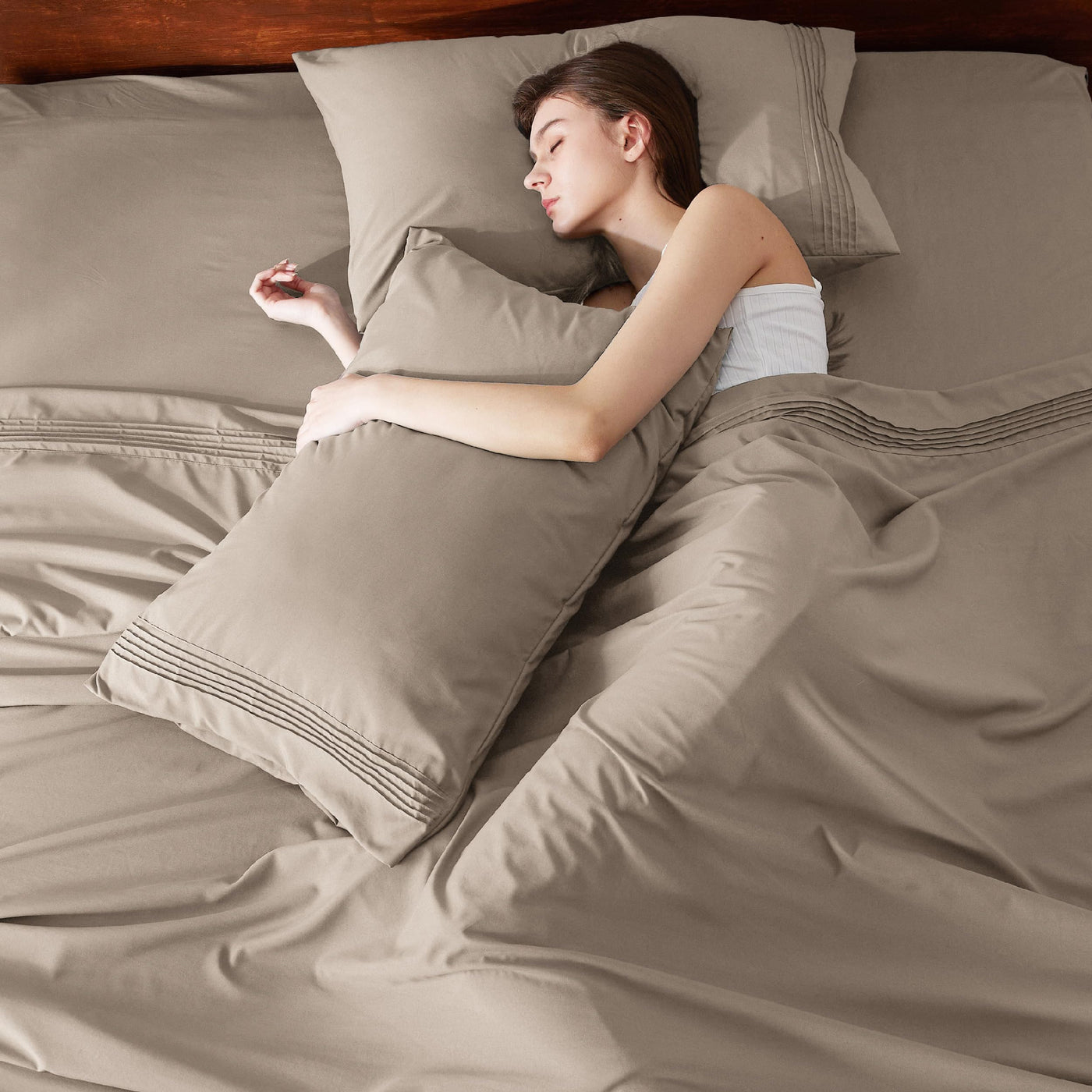 Bedsure Gentlesoft Deep Pocket Full Size Bed Sheets Set - Fits Mattresses Up To 21 Inches Thick - 4 Piece Bed Sheets, Moisture Wicking, Soft & Cooling Bedsheets & Pillowcases, Easy & Secure Fit, Taupe