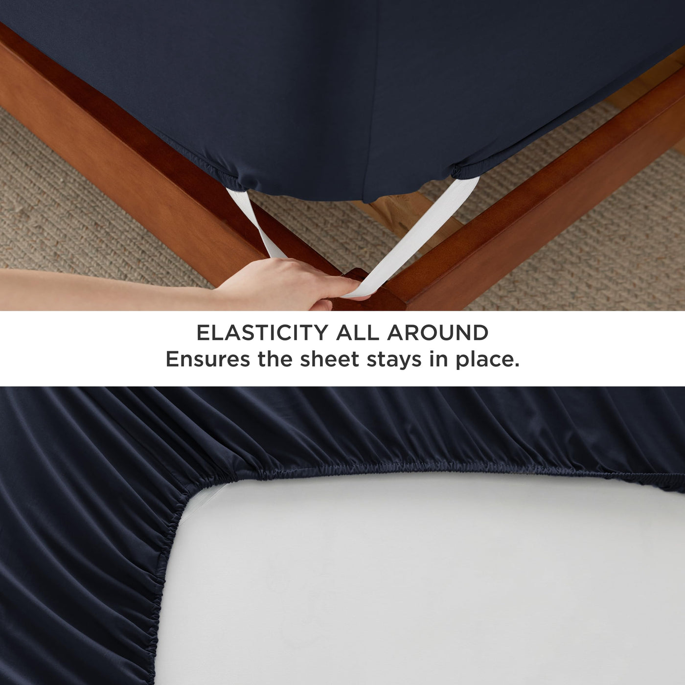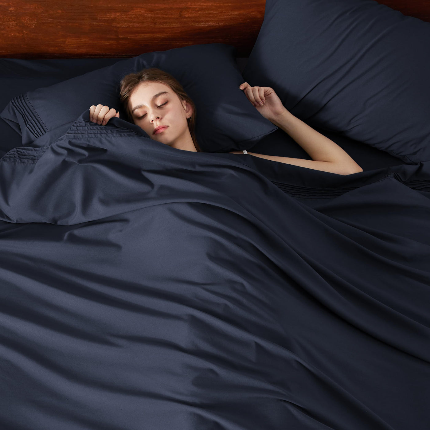 Bedsure Gentlesoft Deep Pocket Queen Sheets Set - Fits Mattresses Up To 21 Inches Thick - 4 Piece Bed Sheets, Moisture Wicking, Soft & Cooling Bedsheets & Pillowcases, Easy & Secure Fit, Navy
