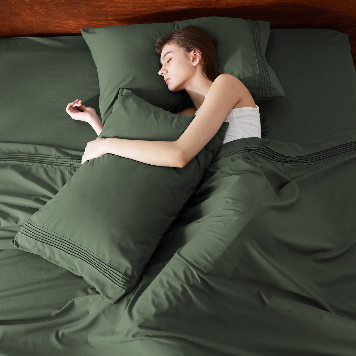 Bedsure Gentlesoft Deep Pocket Queen Sheets Set - Fits Mattresses Up To 21 Inches Thick - 4 Piece Bed Sheets, Moisture Wicking, Soft & Cooling Bedsheets & Pillowcases, Easy & Secure Fit, Olive Green