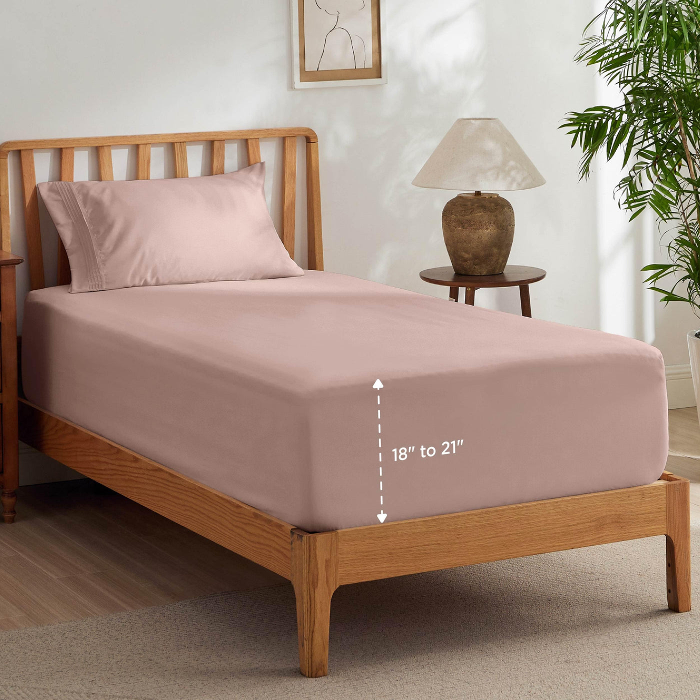 Bedsure Gentlesoft Deep Pocket Twin Sheets Set - Fits Mattresses Up To 21 Inches Thick -3 Piece Bed Sheets, Moisture Wicking, Soft & Cooling Bedsheets & Pillowcases, Easy & Secure Fit, Dusty Pink