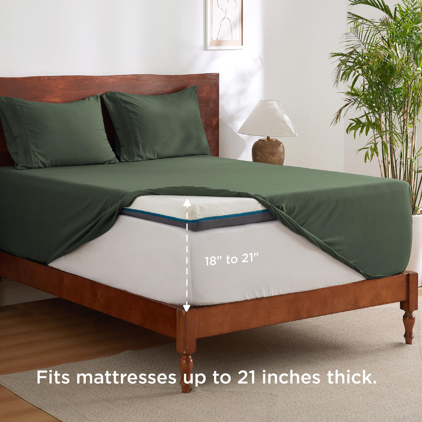 Bedsure Gentlesoft Deep Pocket Twin Sheets Set - Fits Mattresses Up To 21 Inches Thick -3 Piece Bed Sheets, Moisture Wicking, Soft & Cooling Bedsheets & Pillowcases, Easy & Secure Fit, Olive Green