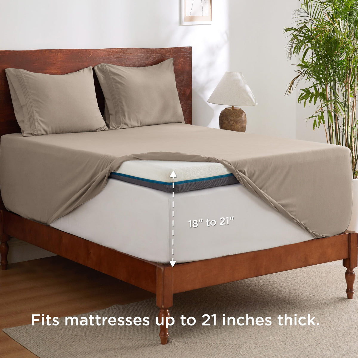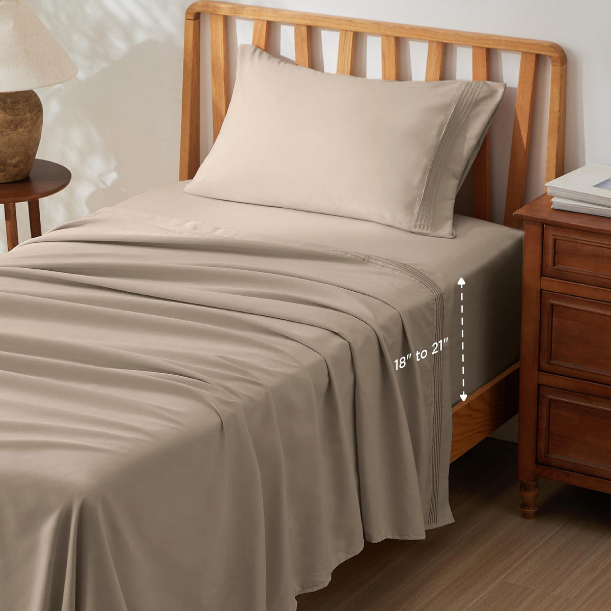 Bedsure Gentlesoft Deep Pocket Twin Sheets Set - Fits Mattresses Up To 21 Inches Thick -3 Piece Bed Sheets, Moisture Wicking, Soft & Cooling Bedsheets & Pillowcases, Easy & Secure Fit, Taupe