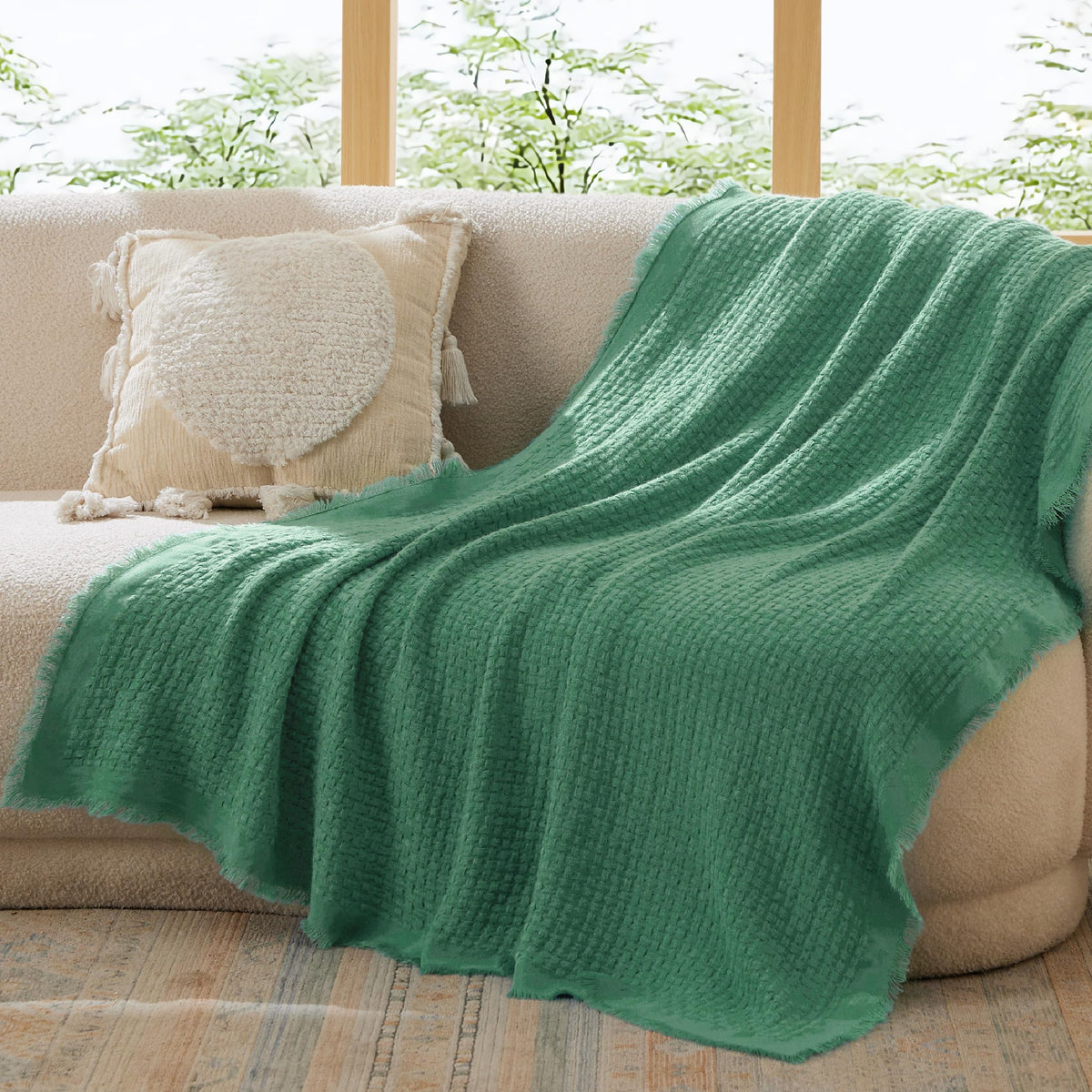 Bedsure Green Throw Blankets For Couch - Decorative Woven Throws Blanket With Tassels - Soft And Lightweight Farmhouse Throw Blankets For Sofa And Bed (50X60 Inches)