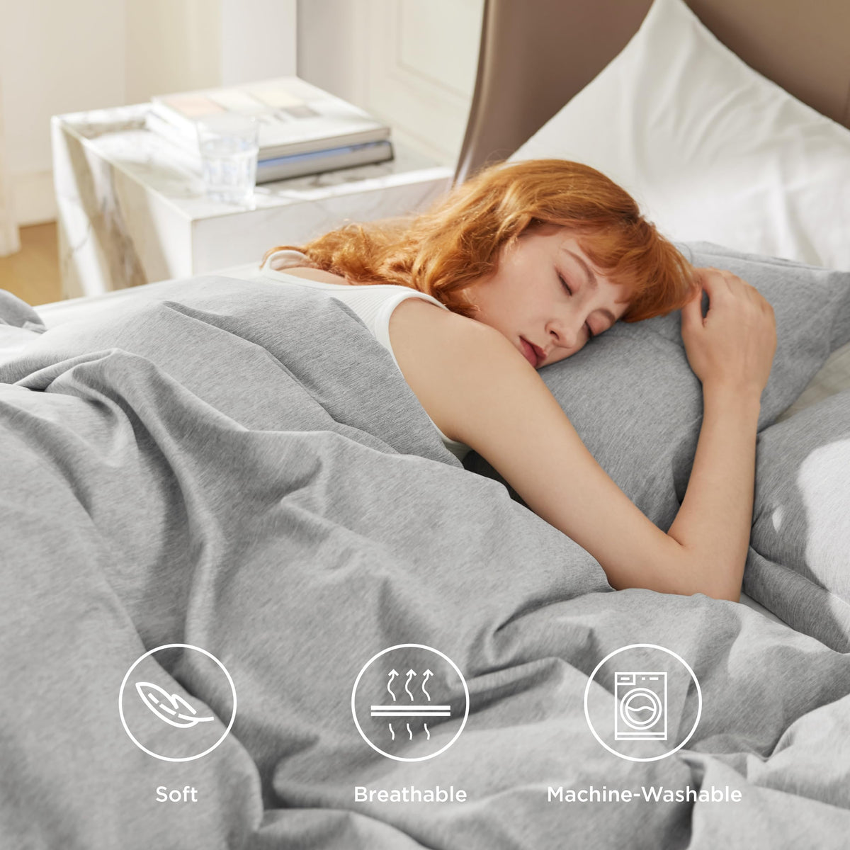 Exquisite and Simplistic Style: This duvet cover set is cationic dyed to achieve a subtle yet elegant dual-color noise effect, and can easily coordinate with various home decor styles. Extra Soft: With Bedsure's unique brushing technique, this duvet cover set delivers an incredible softness that is satisfyingly comfortable on skin. High Quality: Made with premium material, this duvet cover set is Standard 100 by OEKO-TEX certified for meeting the highest testing criterion for harmful materials and can withstand washes without tearing, shrinking, and fading. Thoughtful Details: Eight corner ties inside the duvet cover ensure a secure fit to prevent your duvet insert from bunching. The zipper lets you seal off your comforter more quickly and easily than traditional button closures.