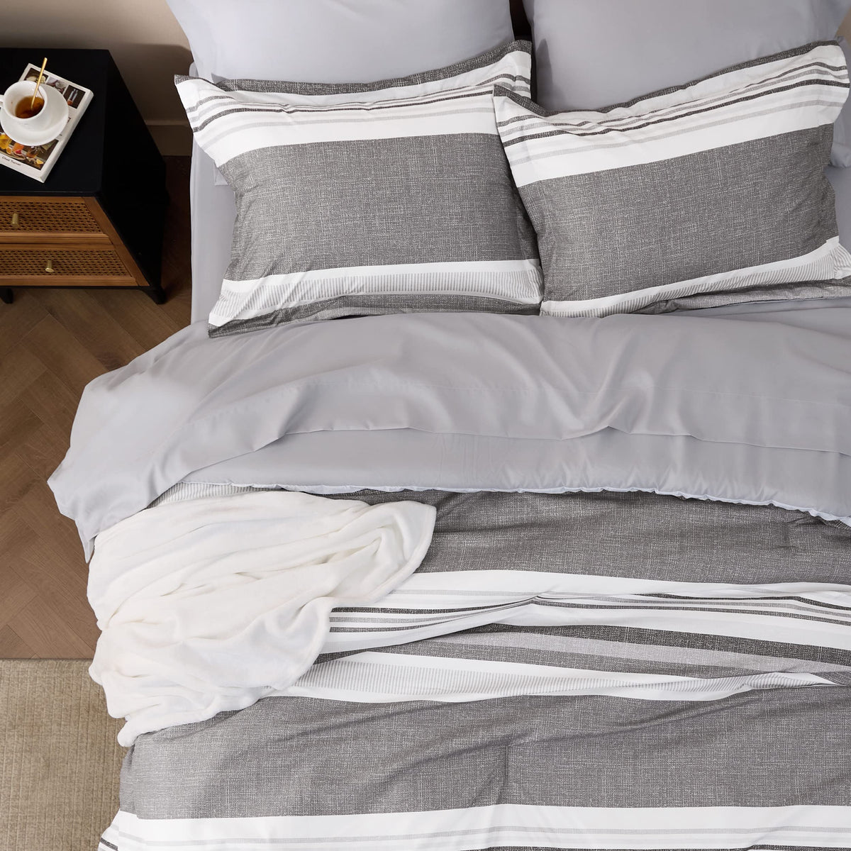 Bedsure King Comforter Set 7 Pieces, Frost Grey Striped Bedding Set For King Size Bed Reversible, Cationic Dyeing Bed In A Bag With Comforter, Sheets, Pillowcases & Shams