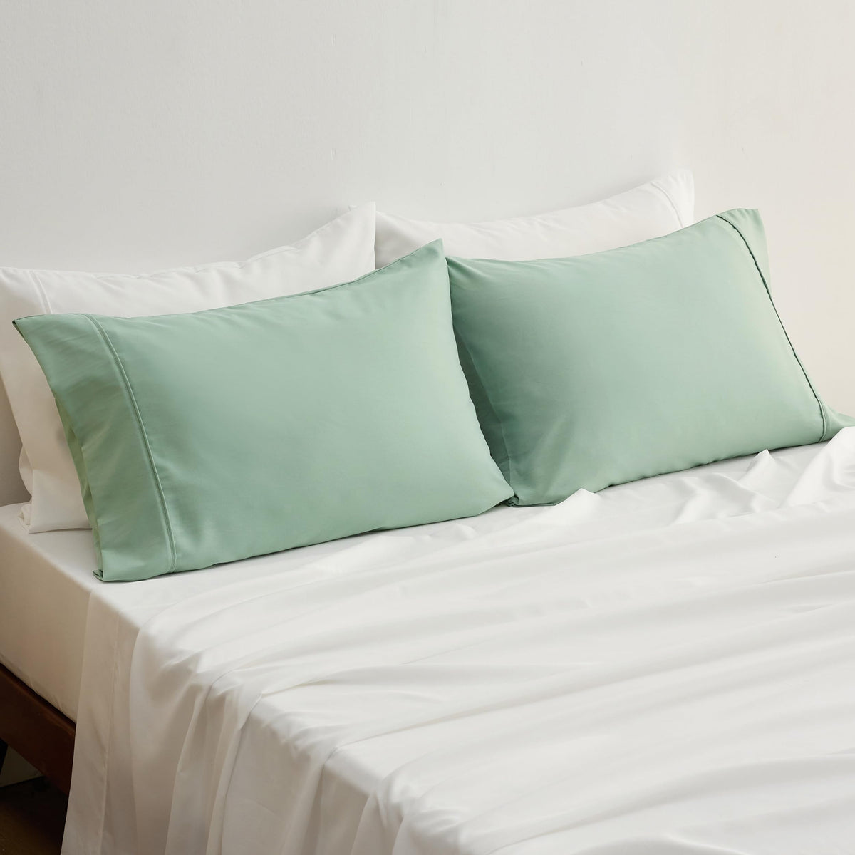 Bedsure King Pillow Cases Set Of 2 - Polyester & Rayon Derived From Bamboo Cooling Pillowcase, Breathable, Soft And Wrinkle-Free Pillow Covers With Envelope Closure, Gifts, Green, 20X36 Inches