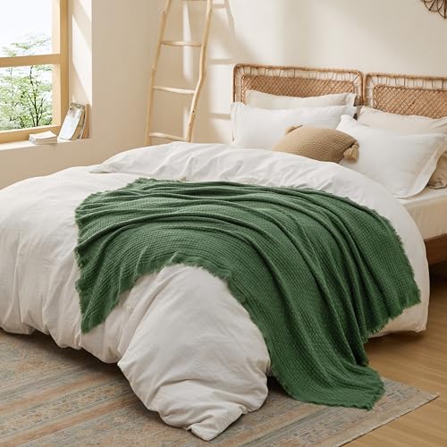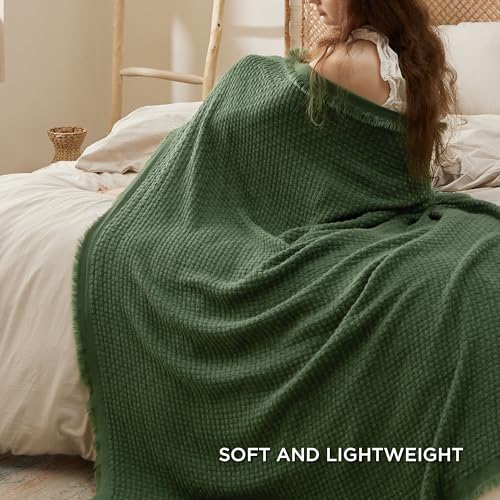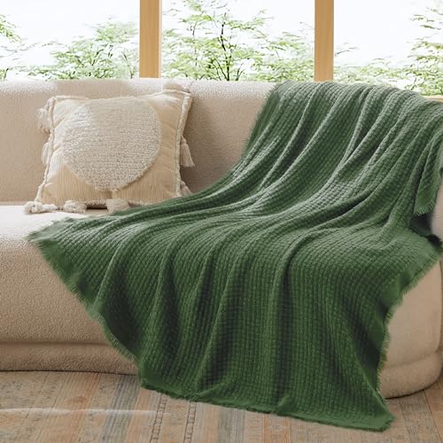 Bedsure Olive Green Throw Blankets for Couch - Decorative Woven Throws Blanket with Tassels - Soft and Lightweight Farmhouse Throw Blankets for Sofa and Bed (50x60 Inches)