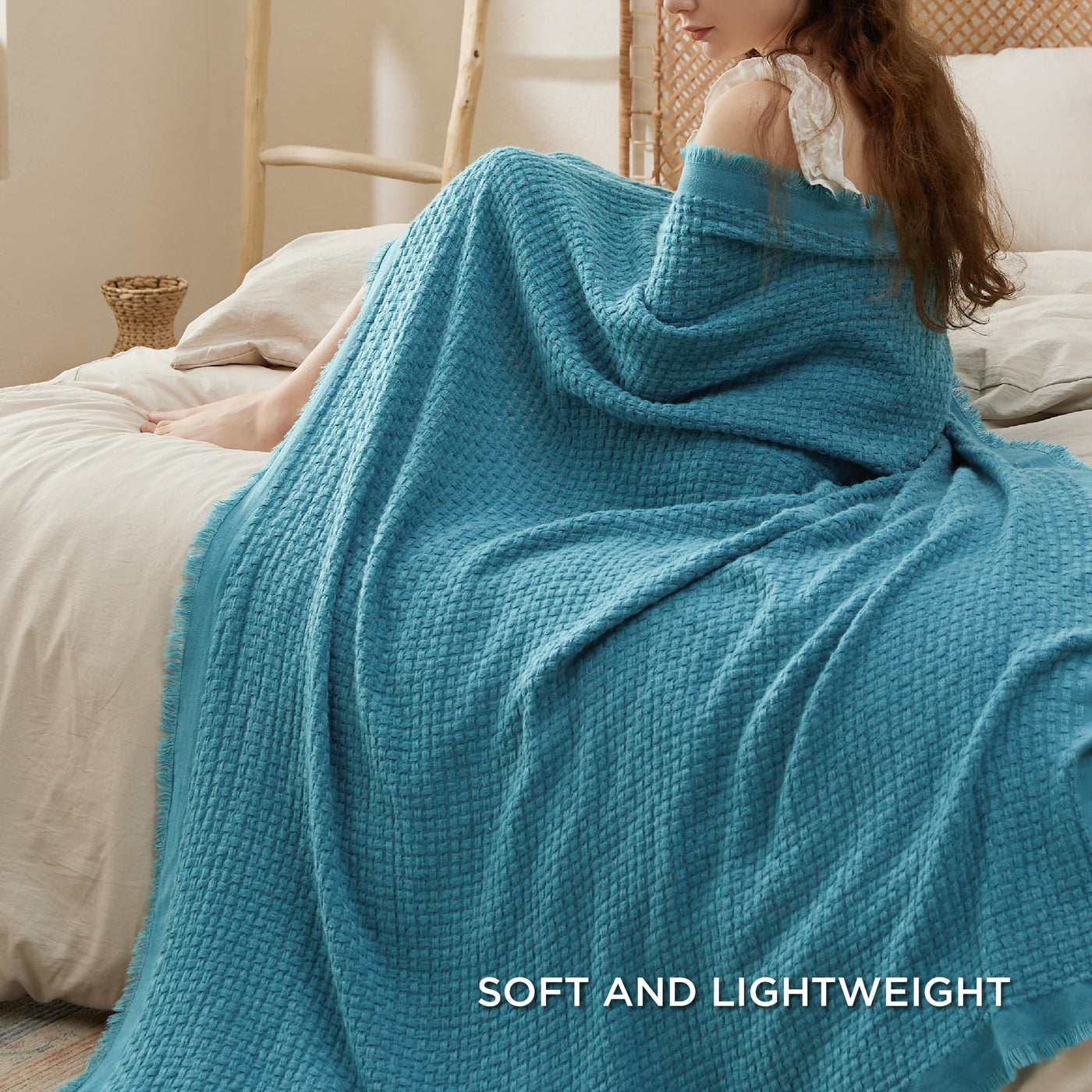 Bedsure Peacock Blue Throw Blankets for Couch - Decorative Woven Throws Blanket with Tassels - Soft and Lightweight Farmhouse Throw Blankets for Sofa and Bed (50x60 Inches)