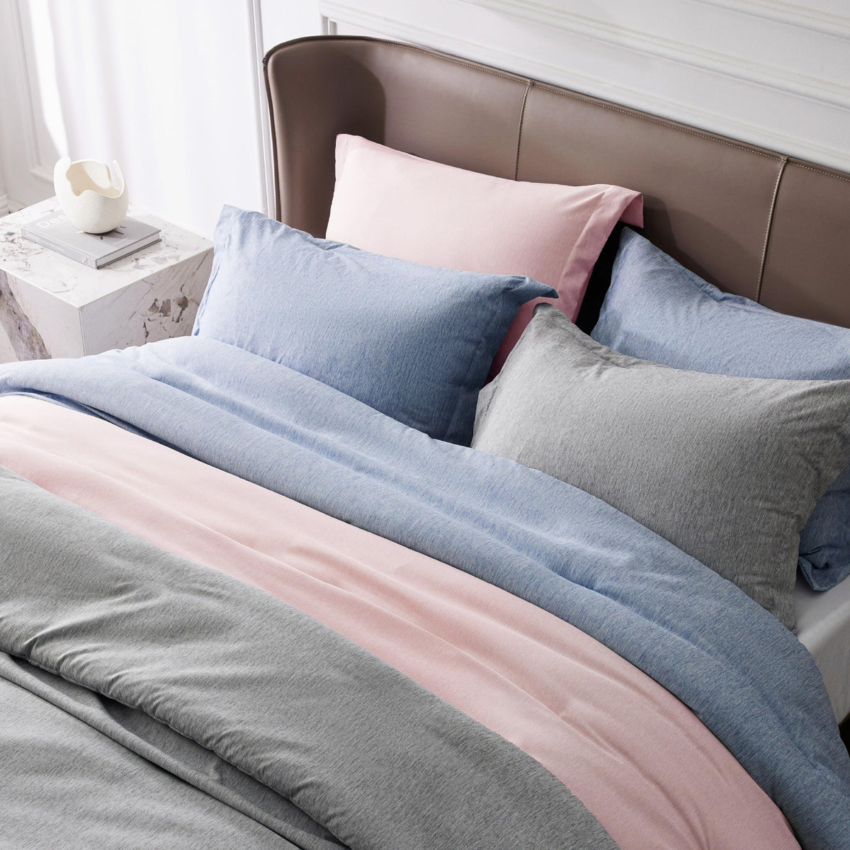 Exquisite and Simplistic Style: This duvet cover set is cationic dyed to achieve a subtle yet elegant dual-color noise effect, and can easily coordinate with various home decor styles. Extra Soft: With Bedsure's unique brushing technique, this duvet cover set delivers an incredible softness that is satisfyingly comfortable on skin. High Quality: Made with premium material, this duvet cover set is Standard 100 by OEKO-TEX certified for meeting the highest testing criterion for harmful materials and can withstand washes without tearing, shrinking, and fading. Thoughtful Details: Eight corner ties inside the duvet cover ensure a secure fit to prevent your duvet insert from bunching. The zipper lets you seal off your comforter more quickly and easily than traditional button closures.