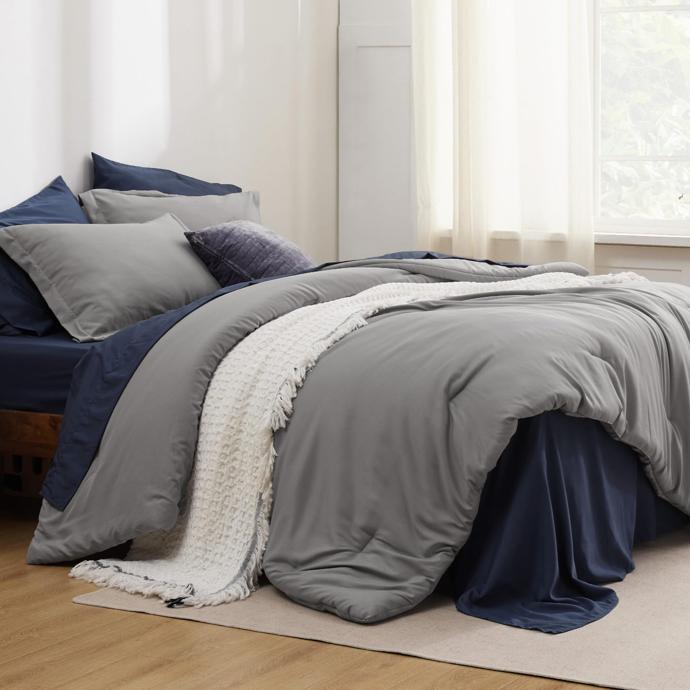 This bed-in-a-bag Set Showcases a Refined Contrasting Color Design. The Interplay of Colors Between The Pillow Shams and Bed Sheets Adds Depth, Effortlessly Enhancing Any Interior Decor Style.