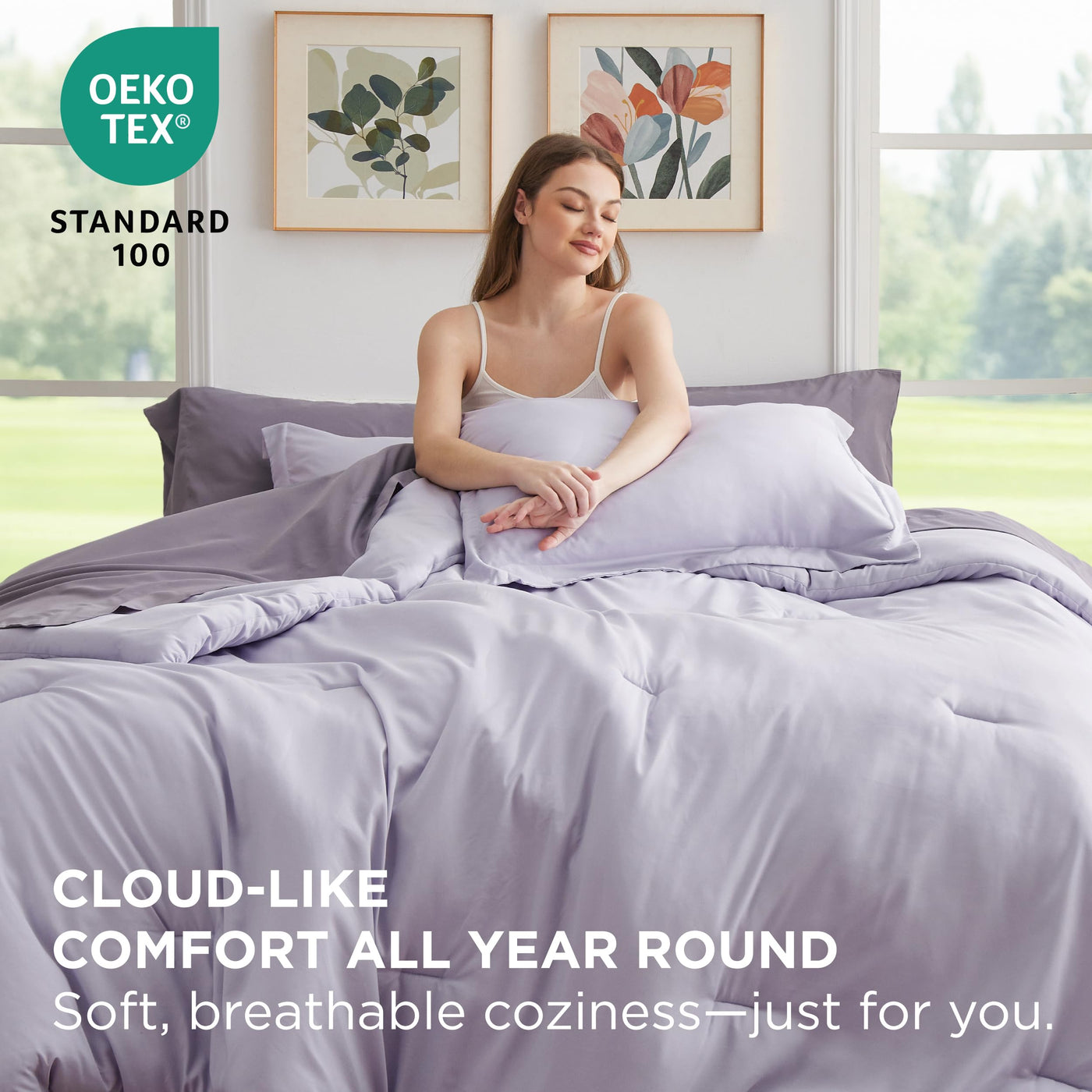Bedsure Queen Comforter Set - 7 Pieces Lavender Queen Bedding Set For All Seasons, Boho Contrasting Design Bed In A Bag With Comforter, Sheets, Pillowcases & Shams