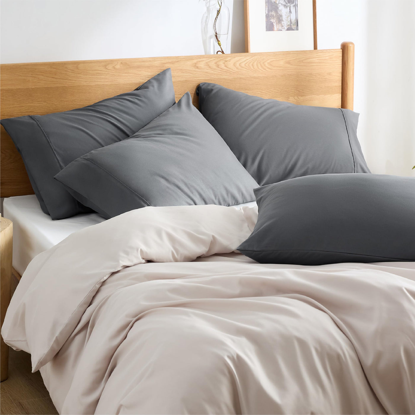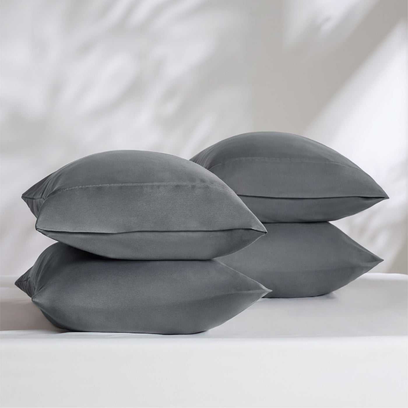 Bedsure Queen Pillow Cases Set of 4 - Dark Grey Polyester Microfiber Pillowcase 4 Pack, Super Soft and Cozy Gray Pillow Case Covers with Envelop Closure, 20x30 Inches
