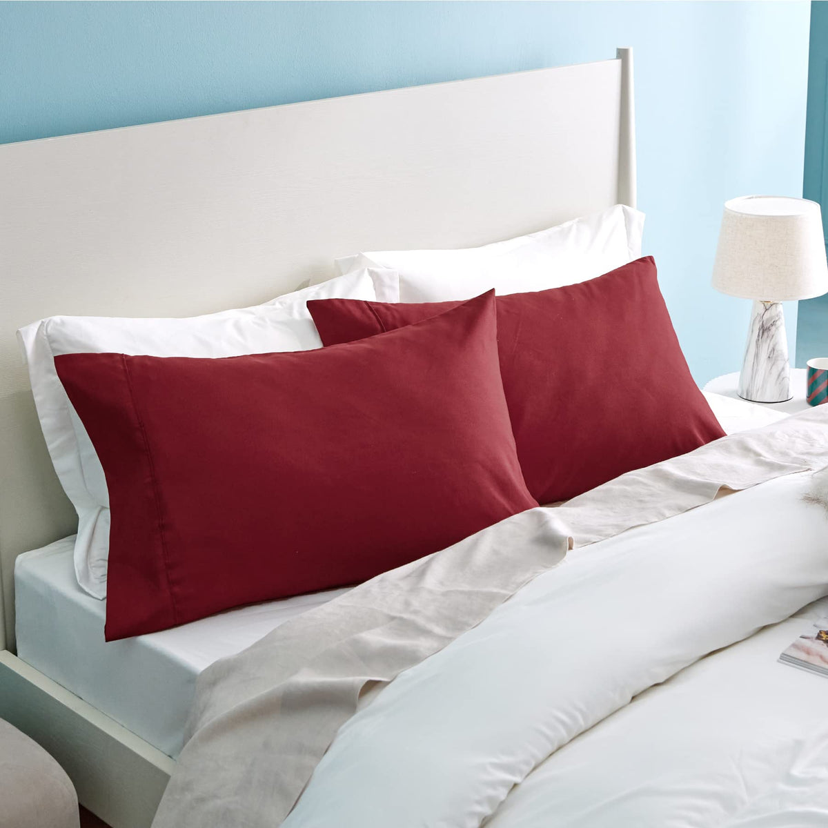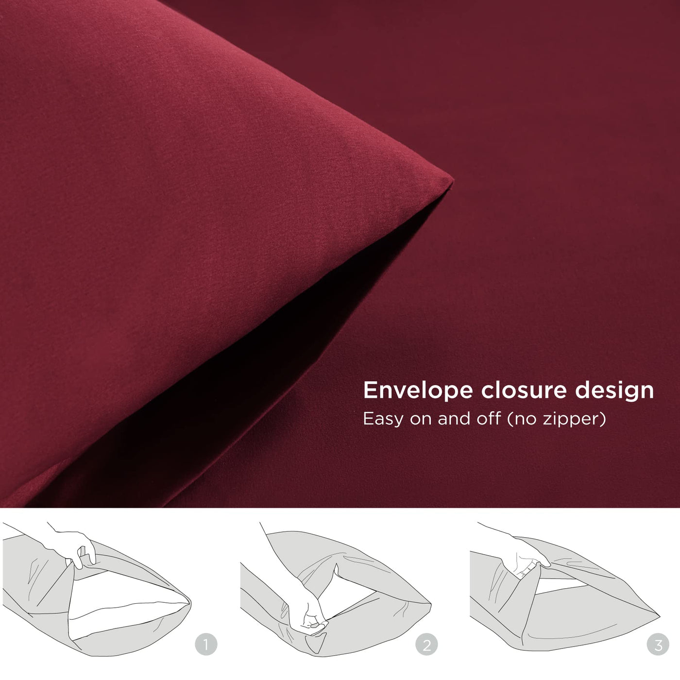 Bedsure Queen Pillowcases Set Of 2 - Burgundy Pillow Cases Queen Size 2 Pack 20 X 30 Inches, Brushed Microfiber, Pillow Case Covers With Envelop Closure