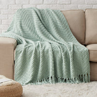 Bedsure Sage Green Throw Blanket For Couch - Versatile Knitwoven Chenille Blanket For Chair, Super Soft, Warm & Decorative Blanket With Tassels For Bed, Sofa And Living Room (Sage Green, Throw)