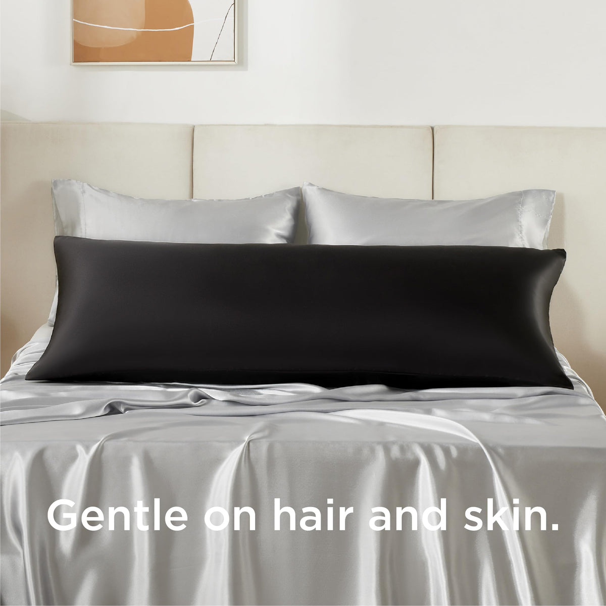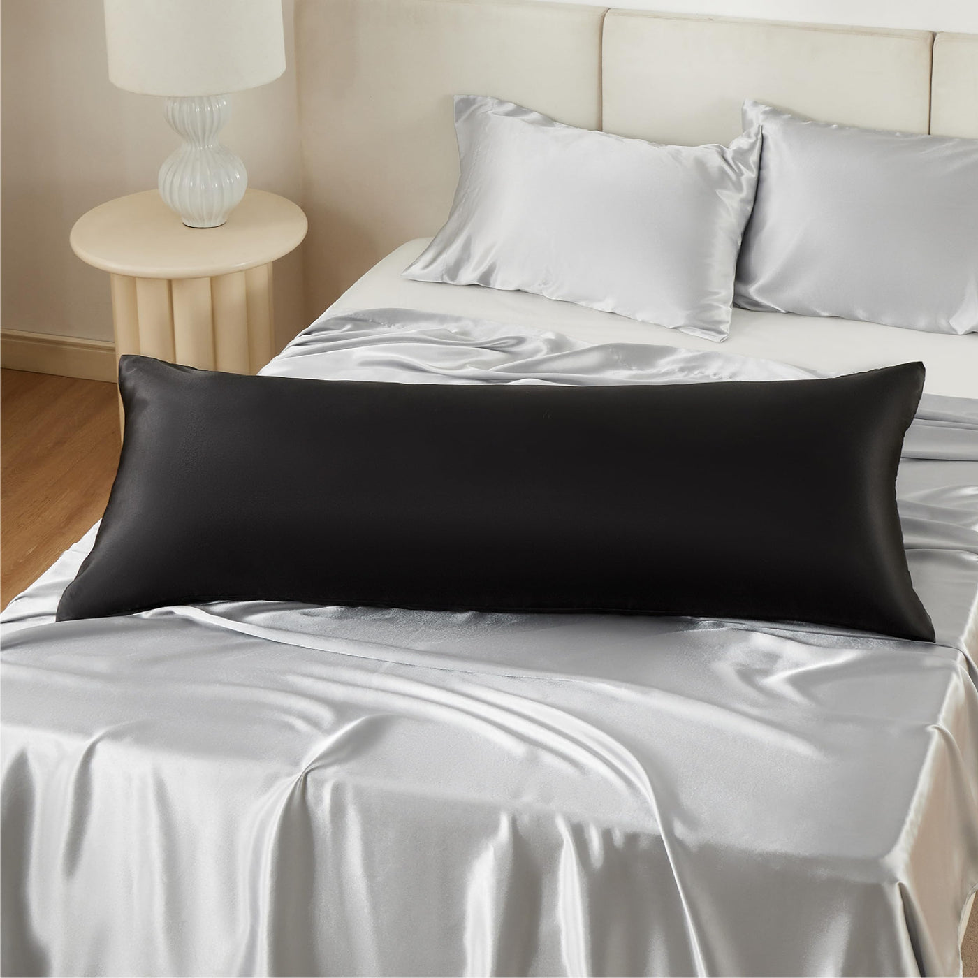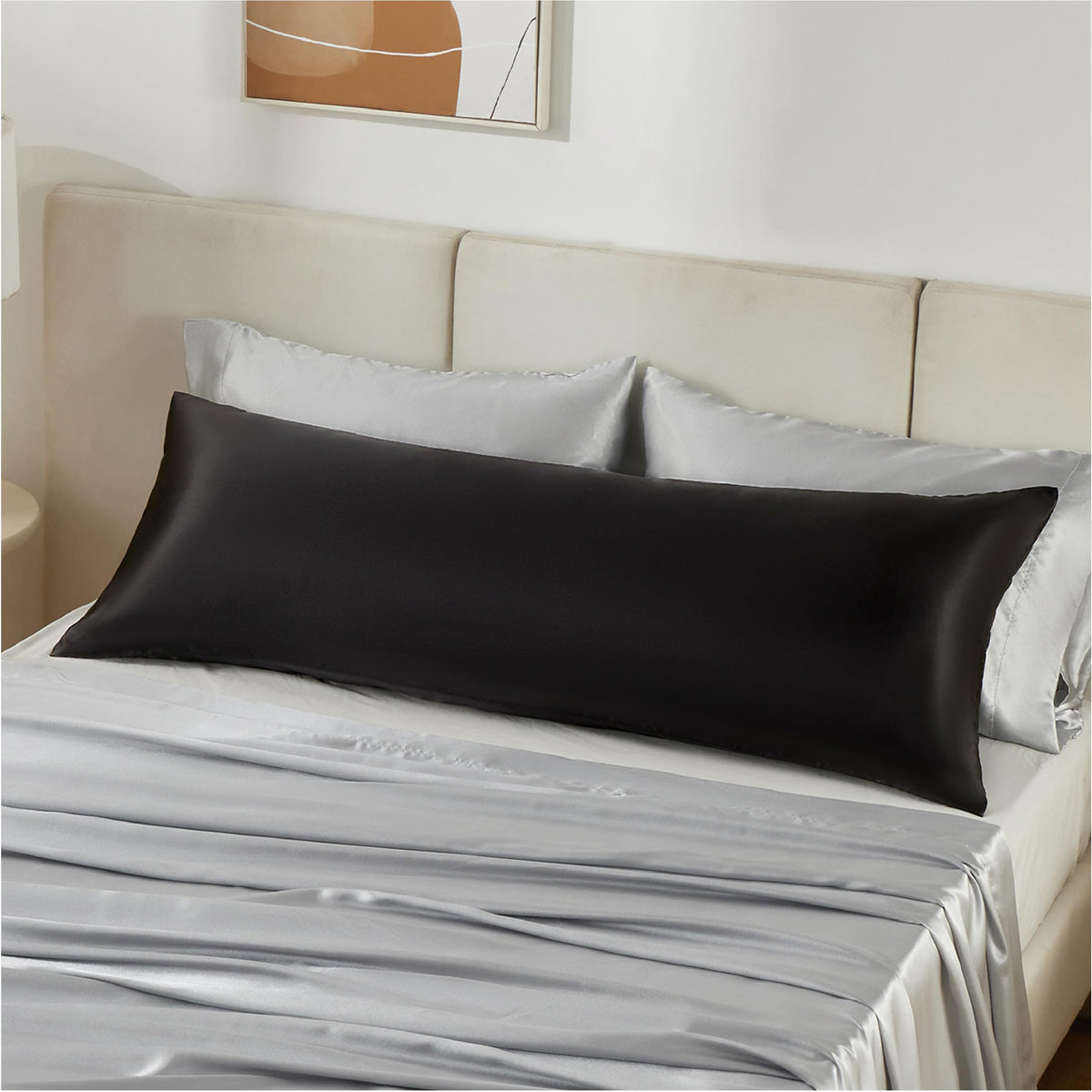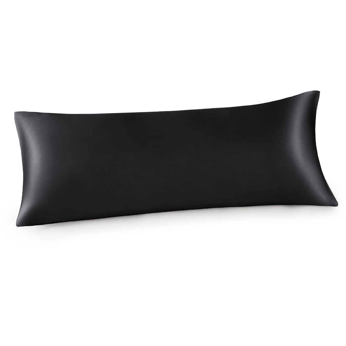 Bedsure Satin Body Pillow Pillowcase For Hair And Skin - Black Zipper Long Pillow Case, Similar To Silk Pillow Cases, Silky & Super Soft Body Pillow Case Cover, Gifts For Women Or Men, 20X54 Inches
