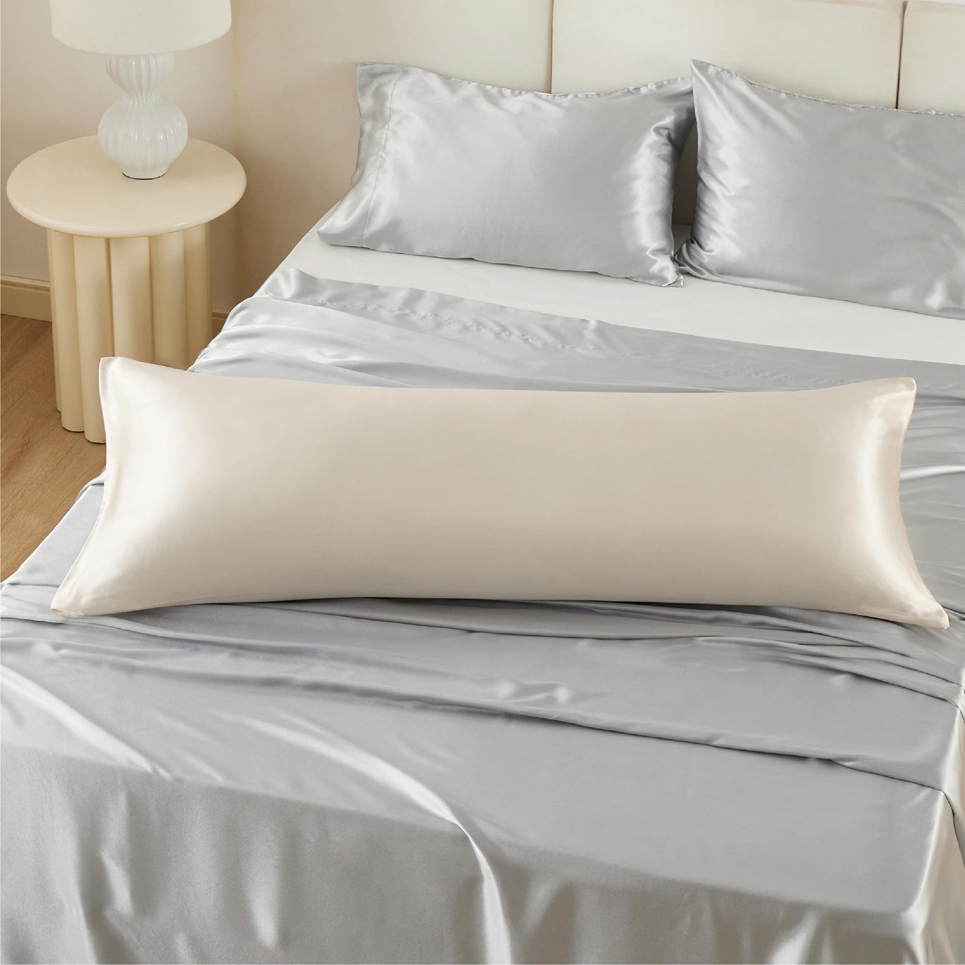 Bedsure Satin Body Pillow Pillowcase For Hair And Skin, Silky & Super Soft Body Pillow Cover With Zipper, Gifts For Women Or Men, Beige, 20X54 Inches
