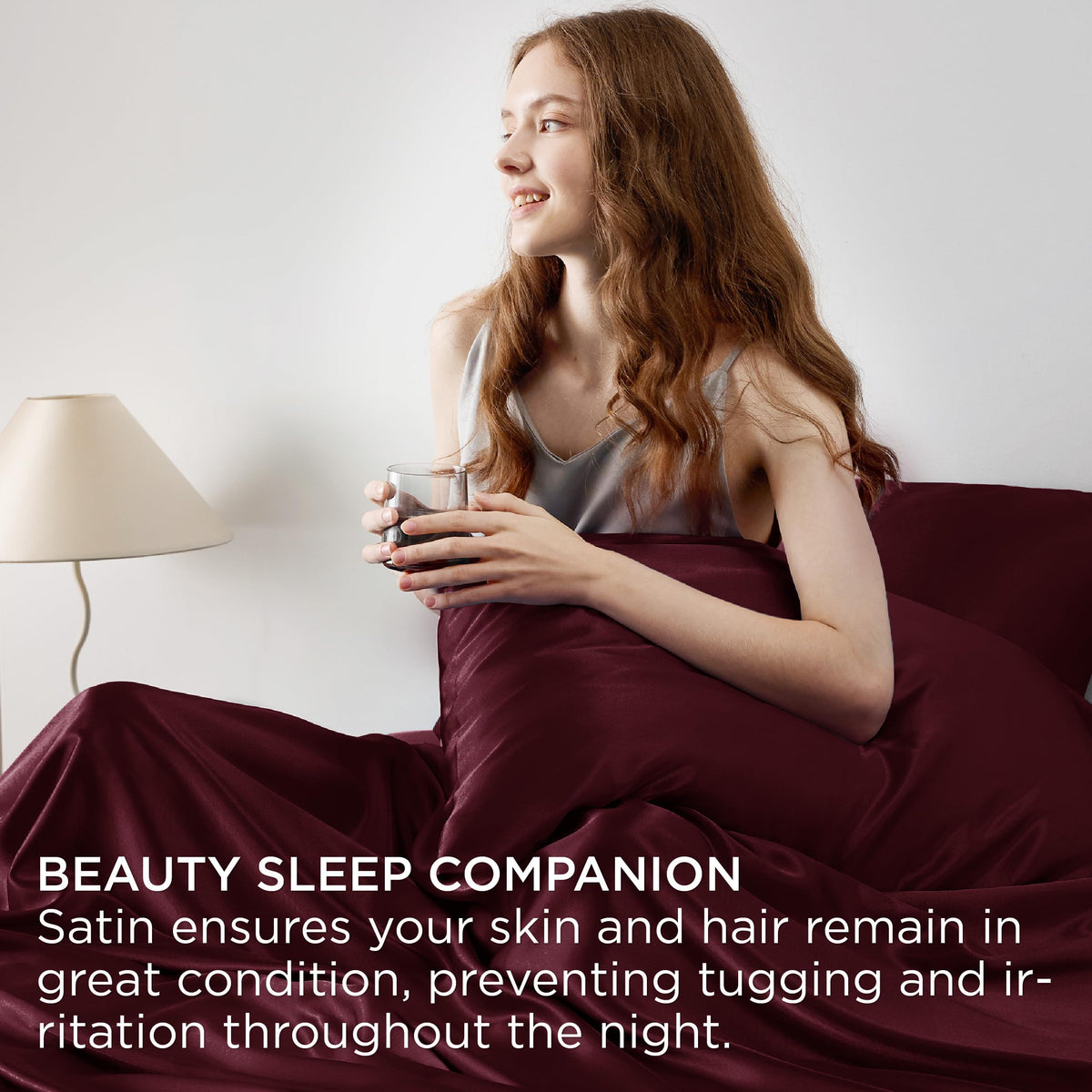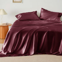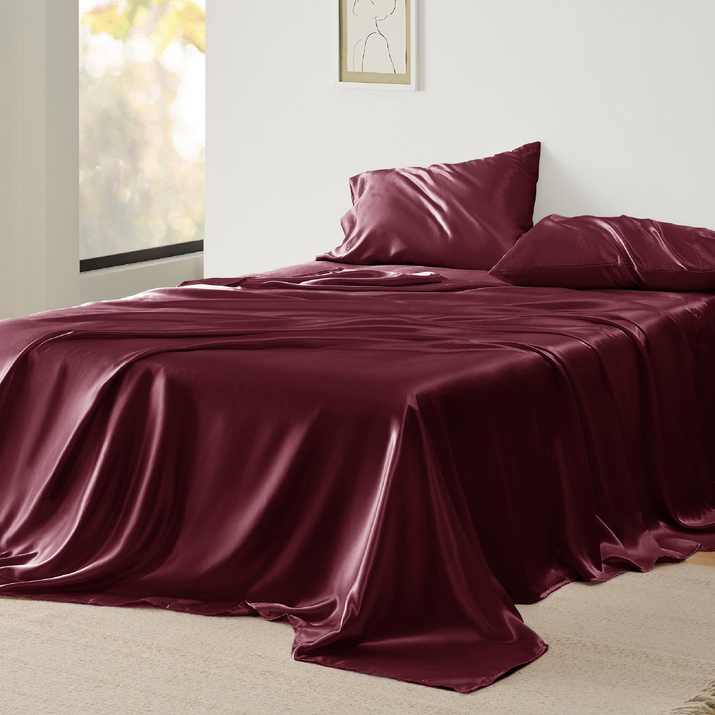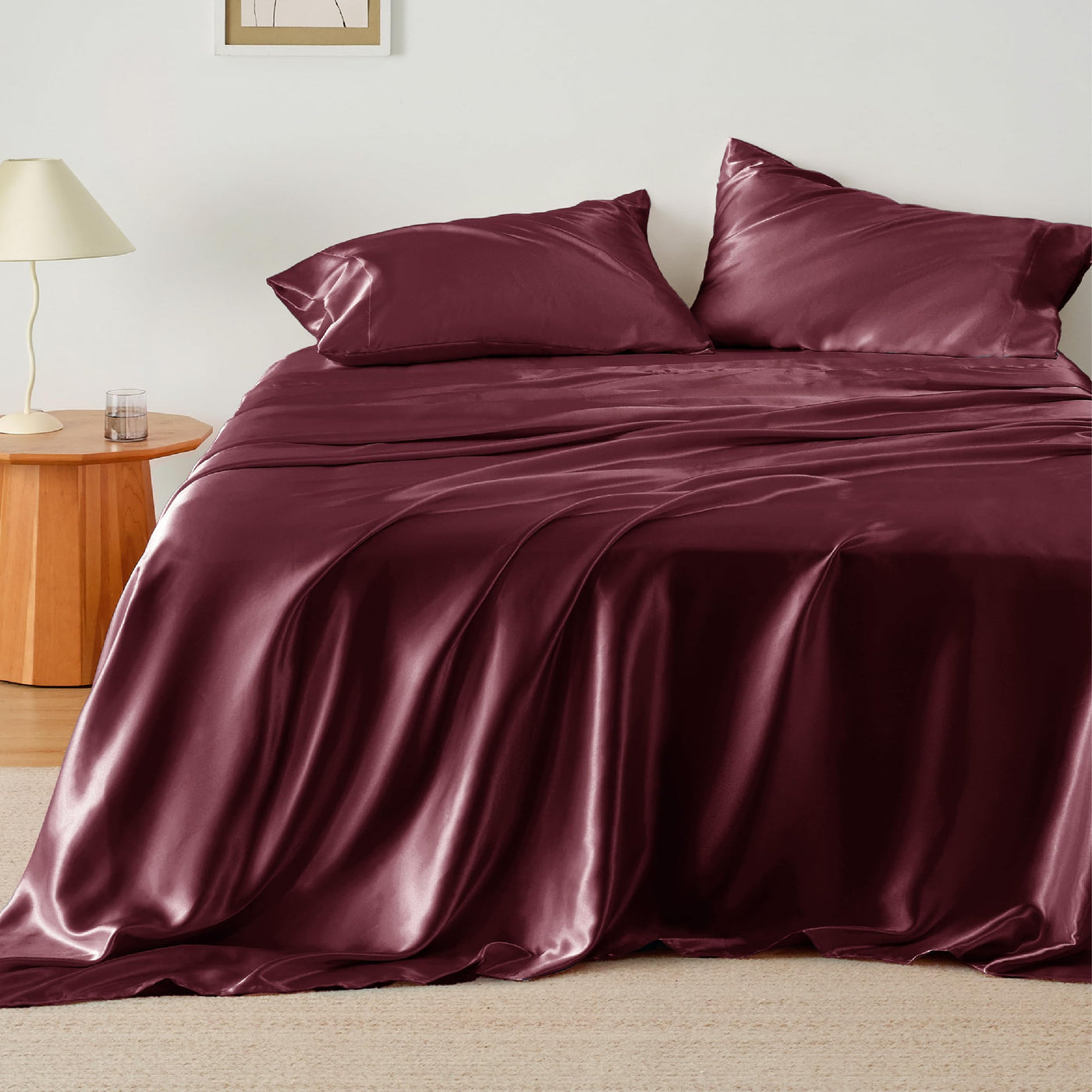 Bedsure Satin Sheets Full - Similar To Silk Sheets, Silky Bedsheet, Luxury & Ultra Soft, Non-Fading & Wrinkle Free, Good For Hair & Skin, Gifts For Women, 4 Pieces, Burgundy