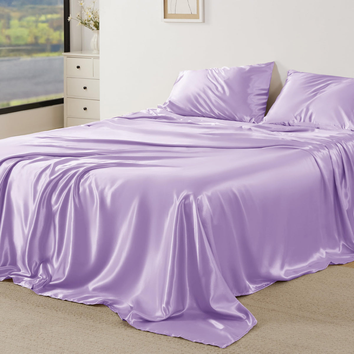Bedsure Satin Sheets Full - Similar To Silk Sheets, Silky Bedsheet, Luxury & Ultra Soft, Non-Fading & Wrinkle Free, Good For Hair & Skin, Gifts For Women, 4 Pieces, Lavender