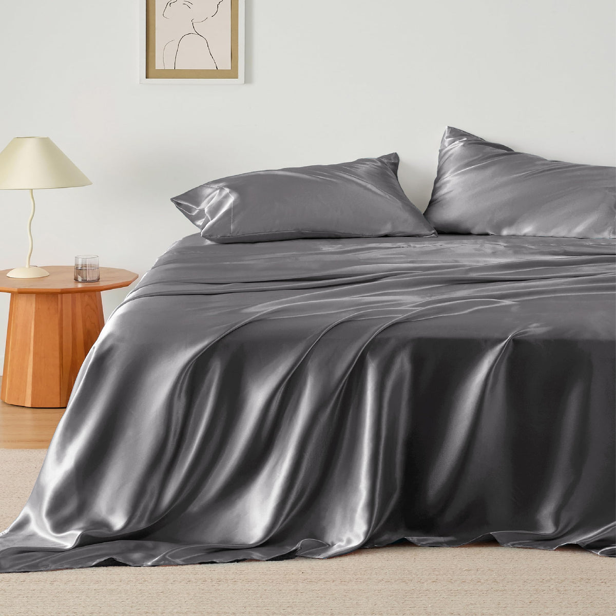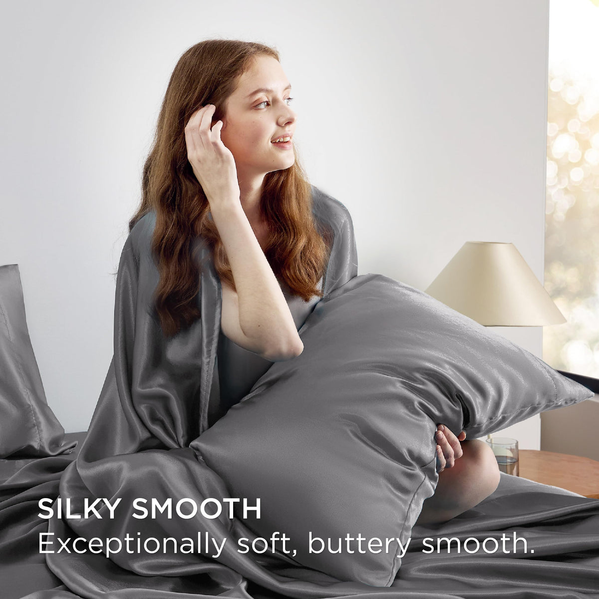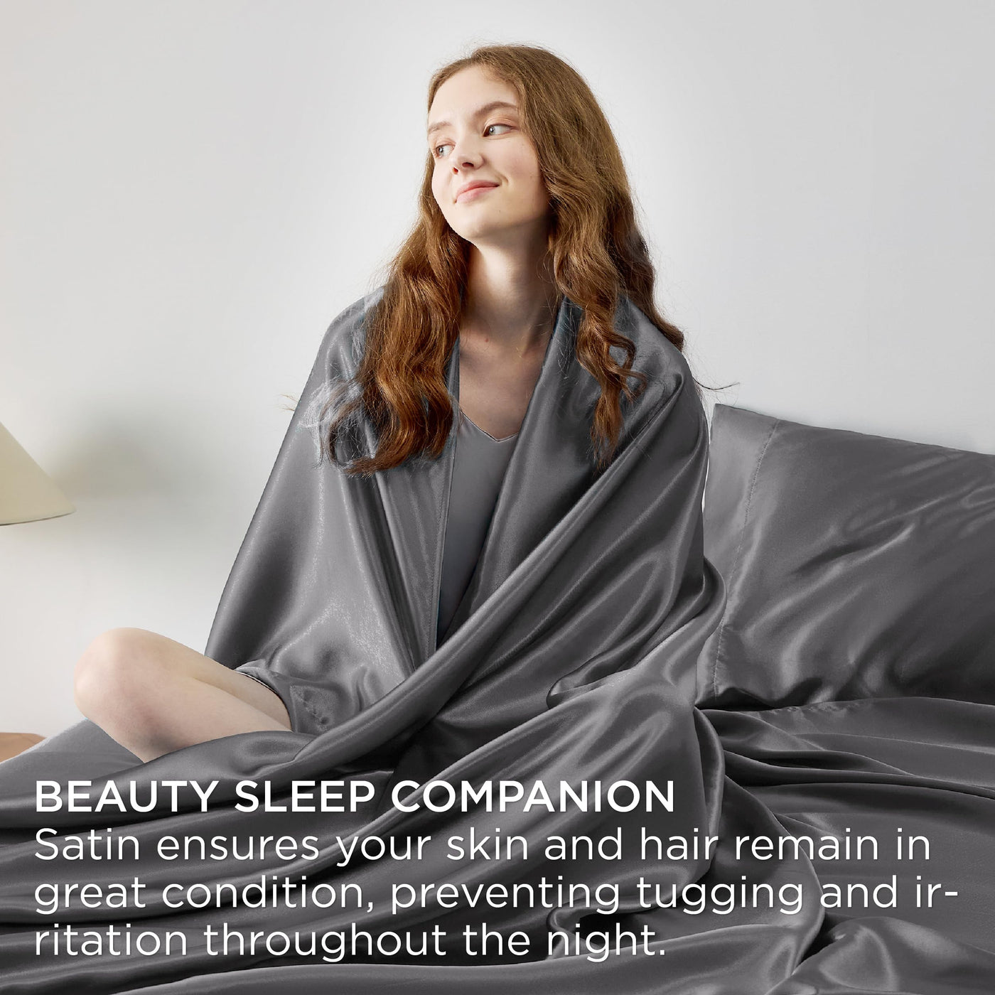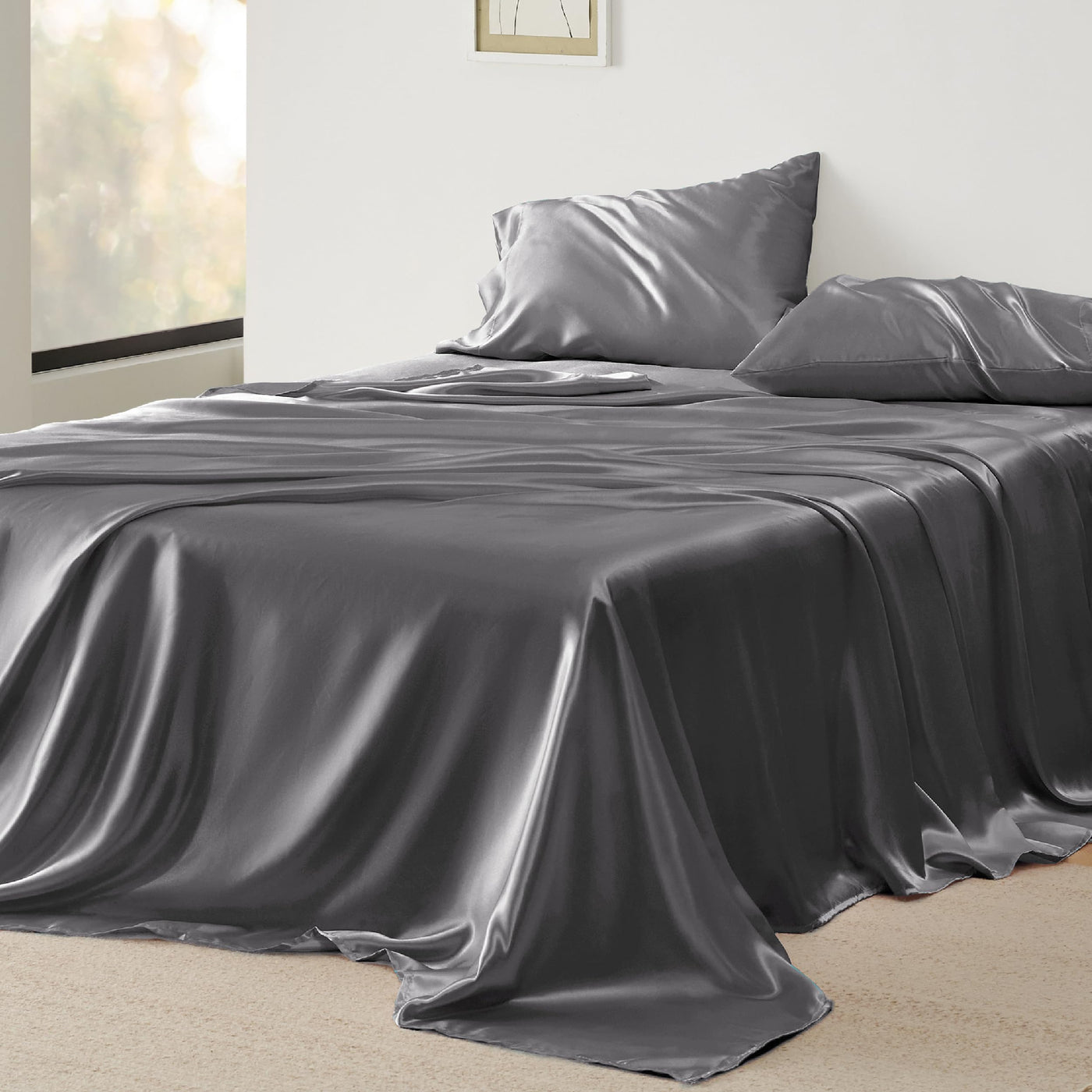 Bedsure Satin Sheets King - Similar To Silk Sheets, Silky Bedsheet, Luxury & Ultra Soft, Non-Fading & Wrinkle Free, Good For Hair & Skin, Gifts For Women, 4 Pieces, Dark Grey