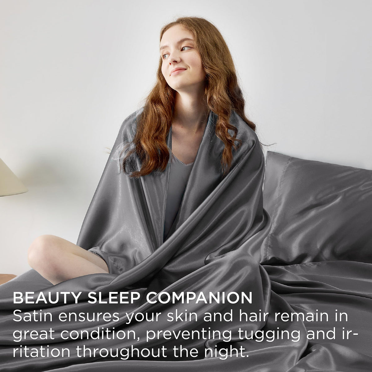 Bedsure Satin Sheets Queen Size - Similar To Silk Sheets, Silky Bedsheet, Luxury & Ultra Soft, Non-Fading & Wrinkle Free, Good For Hair & Skin, Gifts For Women, 4 Pieces, Dark Grey