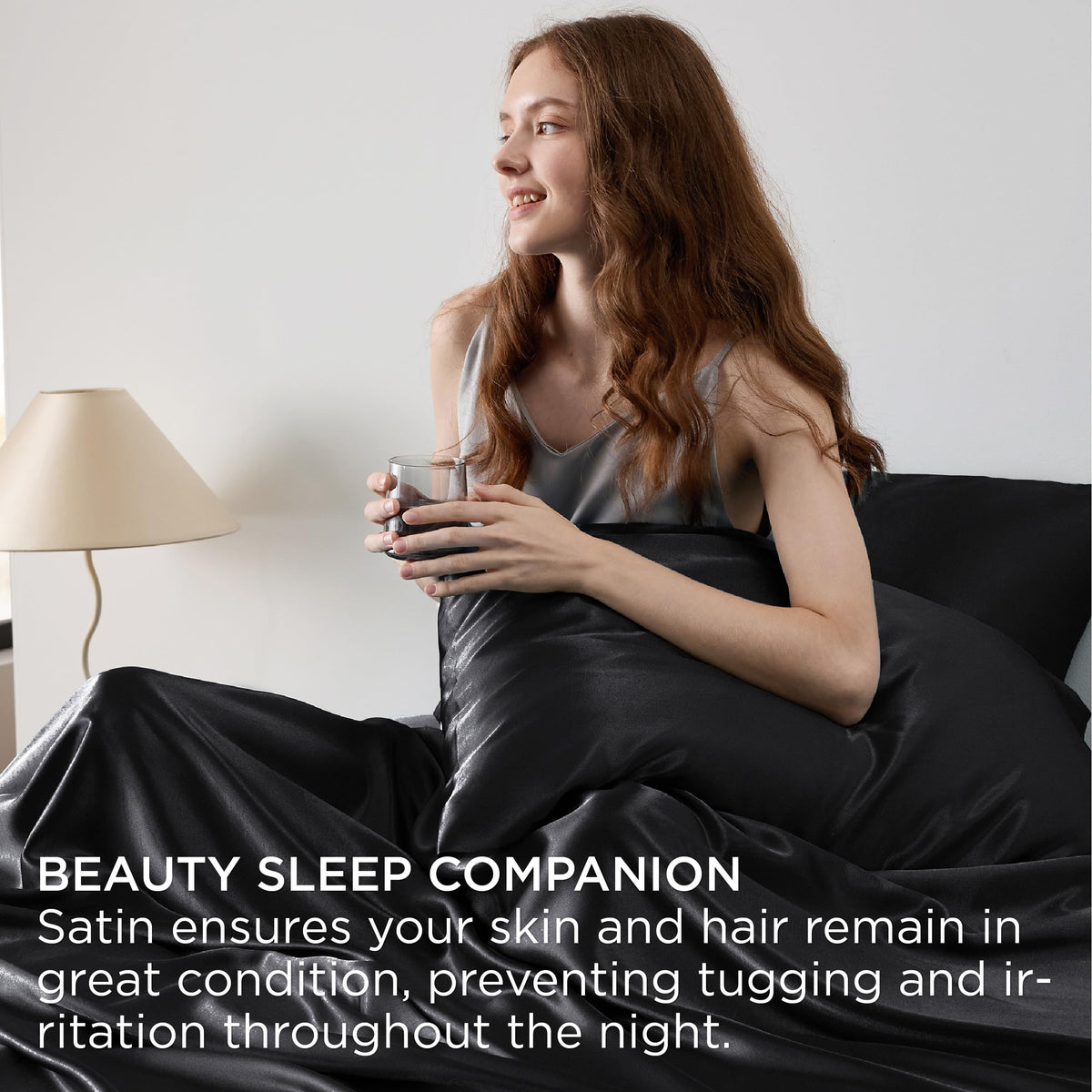 Bedsure Satin Sheets Twin - Similar To Silk Sheets, Silky Bedsheet, Luxury & Ultra Soft, Non-Fading & Wrinkle Free, Good For Hair & Skin, Gifts For Women, 3 Pieces, Black