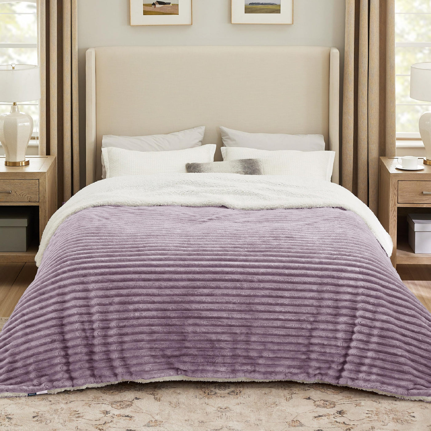 Bedsure Sherpa Blanket Queen Size For Bed - Super Soft Cozy Blanket Gift For Women, Fleece Thick Warm Blanket For Winter, Purple, 90X90 Inches