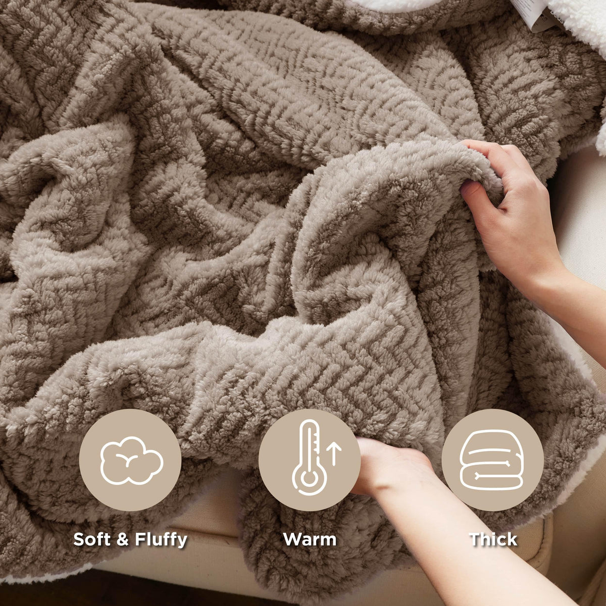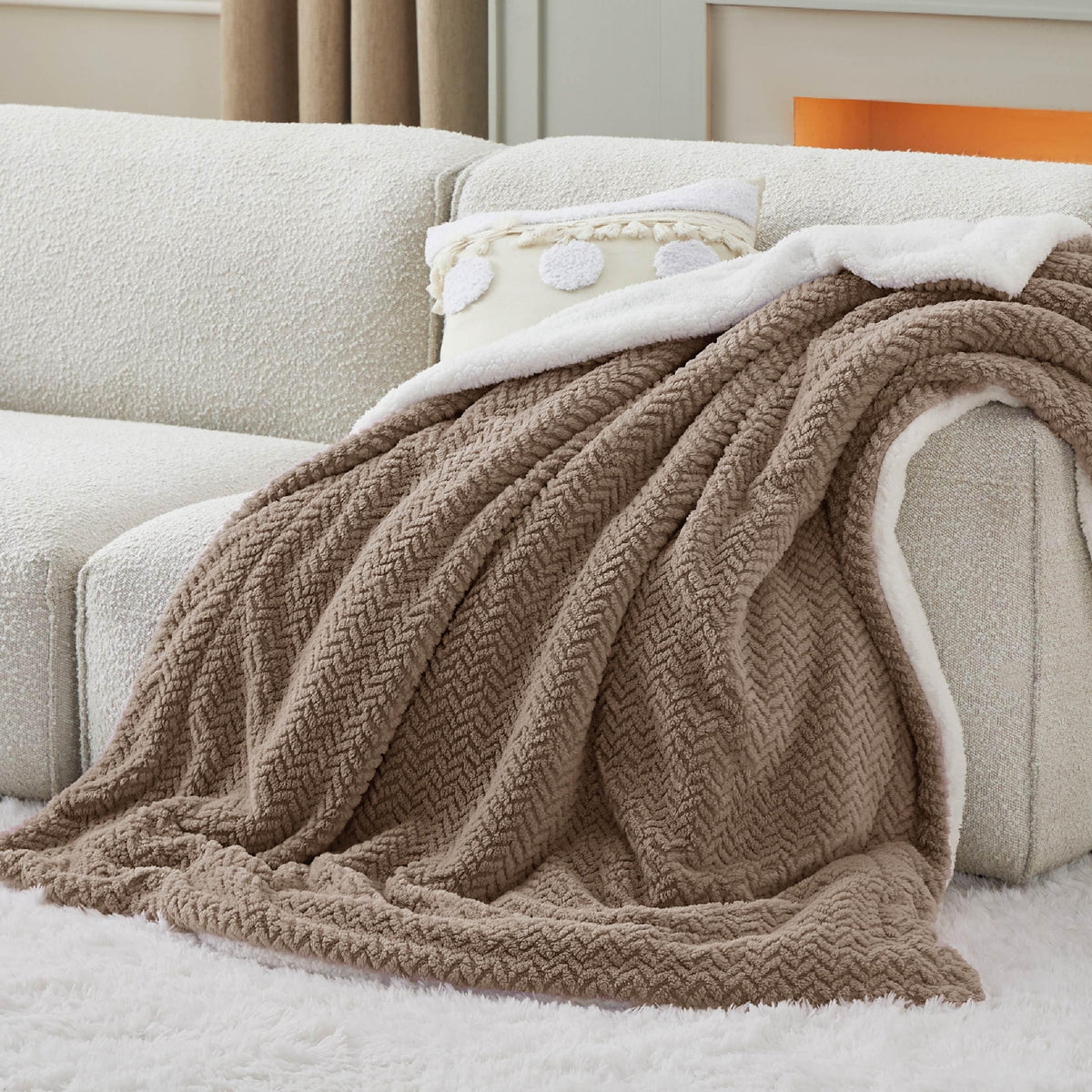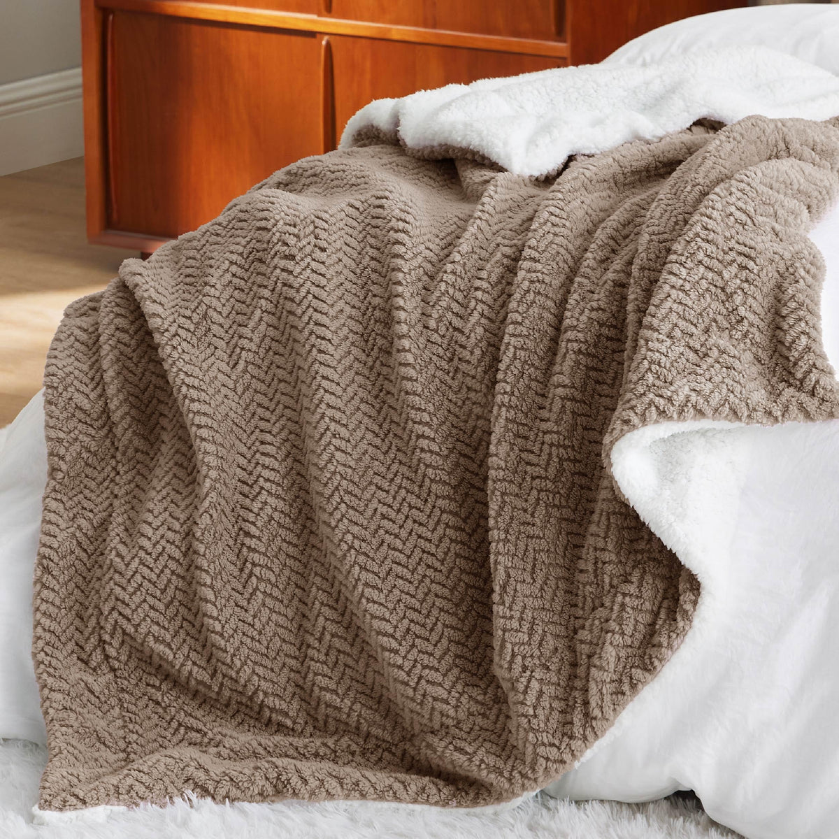 Bedsure Sherpa Throw Blanket For Couch - Herringbone Fleece Thick Warm Blanket For Winter, Fuzzy Soft Cozy Tan Throw Blanket Gif
