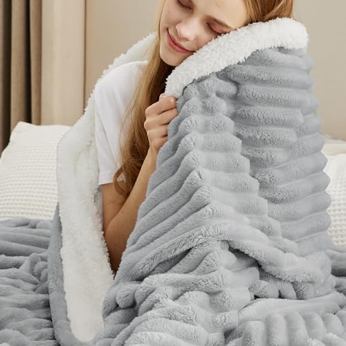 Bedsure Sherpa Throw Blanket for Couch - Super Soft Cozy Blanket for Bed, Fleece Thick Warm Blanket for Winter, Plush Grey Throw Blanket Gift, 50x60 Inches