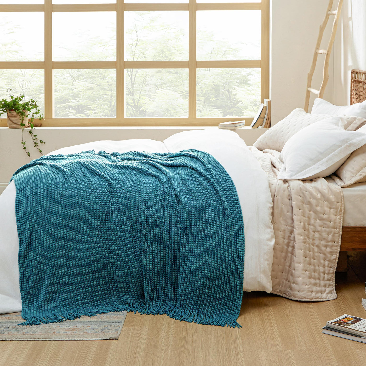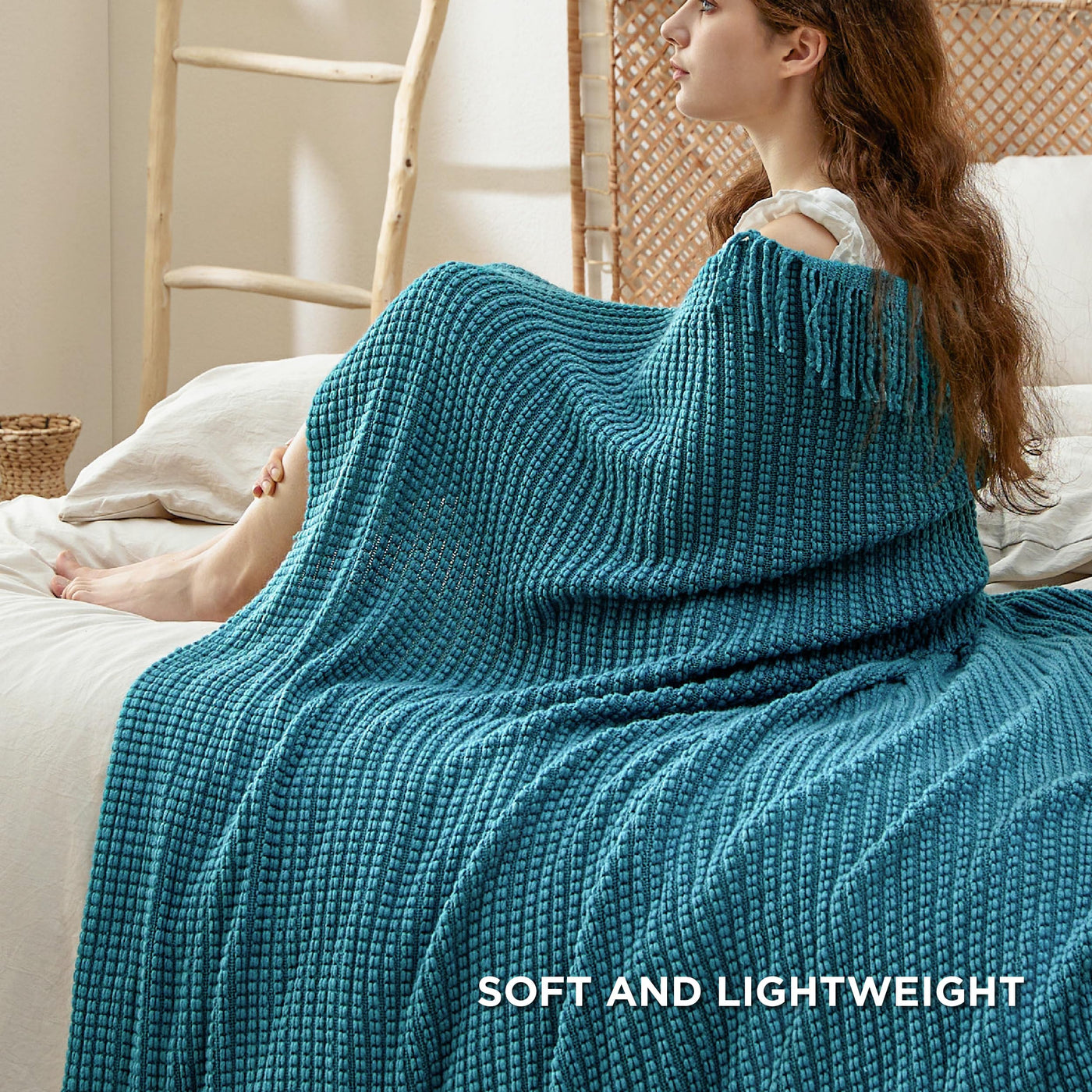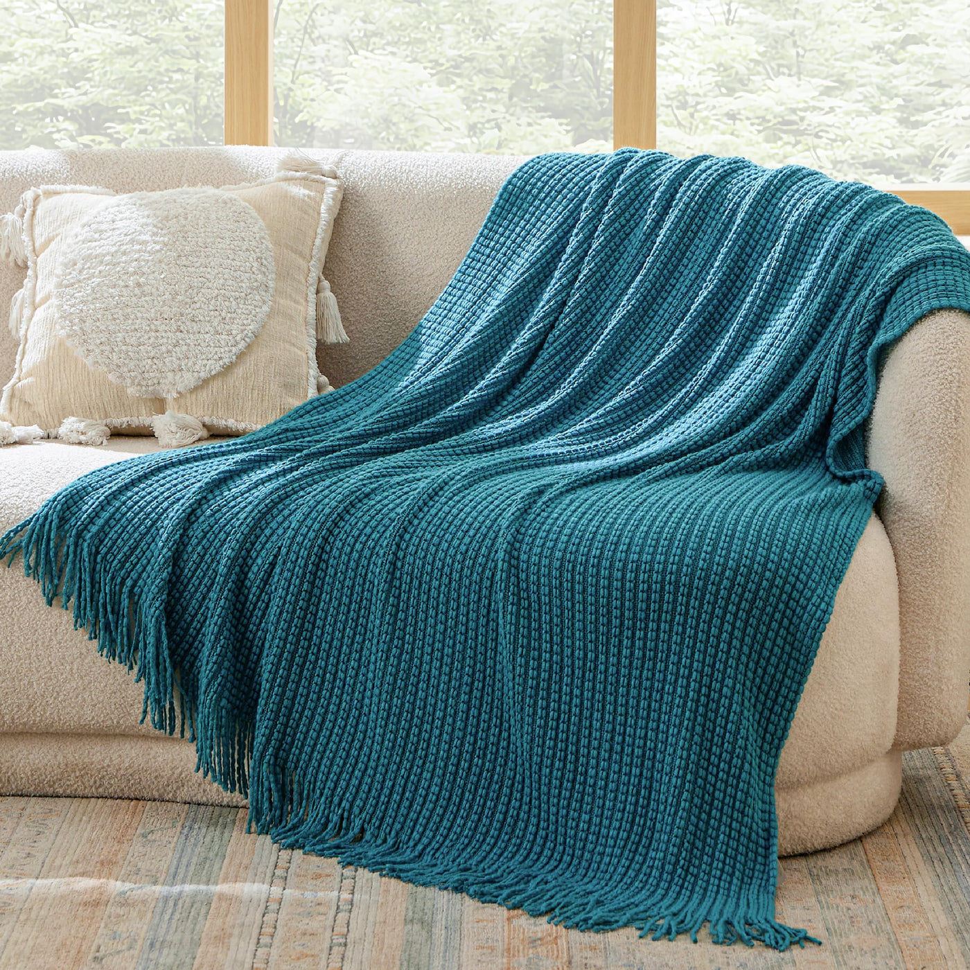 Bedsure Teal Blue Throw Blankets for Couch - Decorative Woven Throws Blanket with Tassels - Soft and Lightweight Farmhouse Throw Blankets for Sofa and Bed (50x60 Inches)