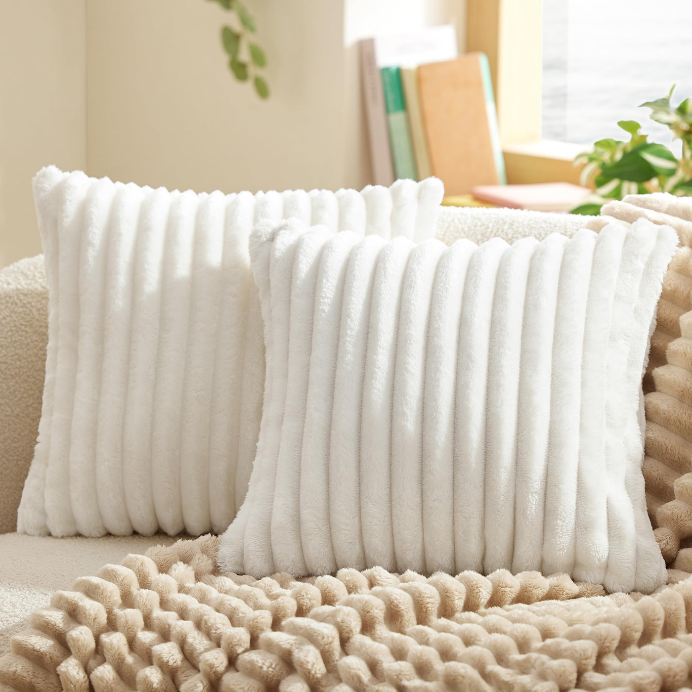 Bedsure Throw Pillow Covers 18X18 Inch - Pack Of 2 White Luxury Soft Cozy Fluffy, Striped Pillow Covers, Home Decor For Sofa Couch Bed