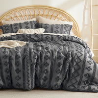 Bedsure Tufted Boho Comforter Set Queen Size - Dark Grey Boho Bedding Comforter Set, 3 Pieces Farmhouse Shabby Chic Embroidery B