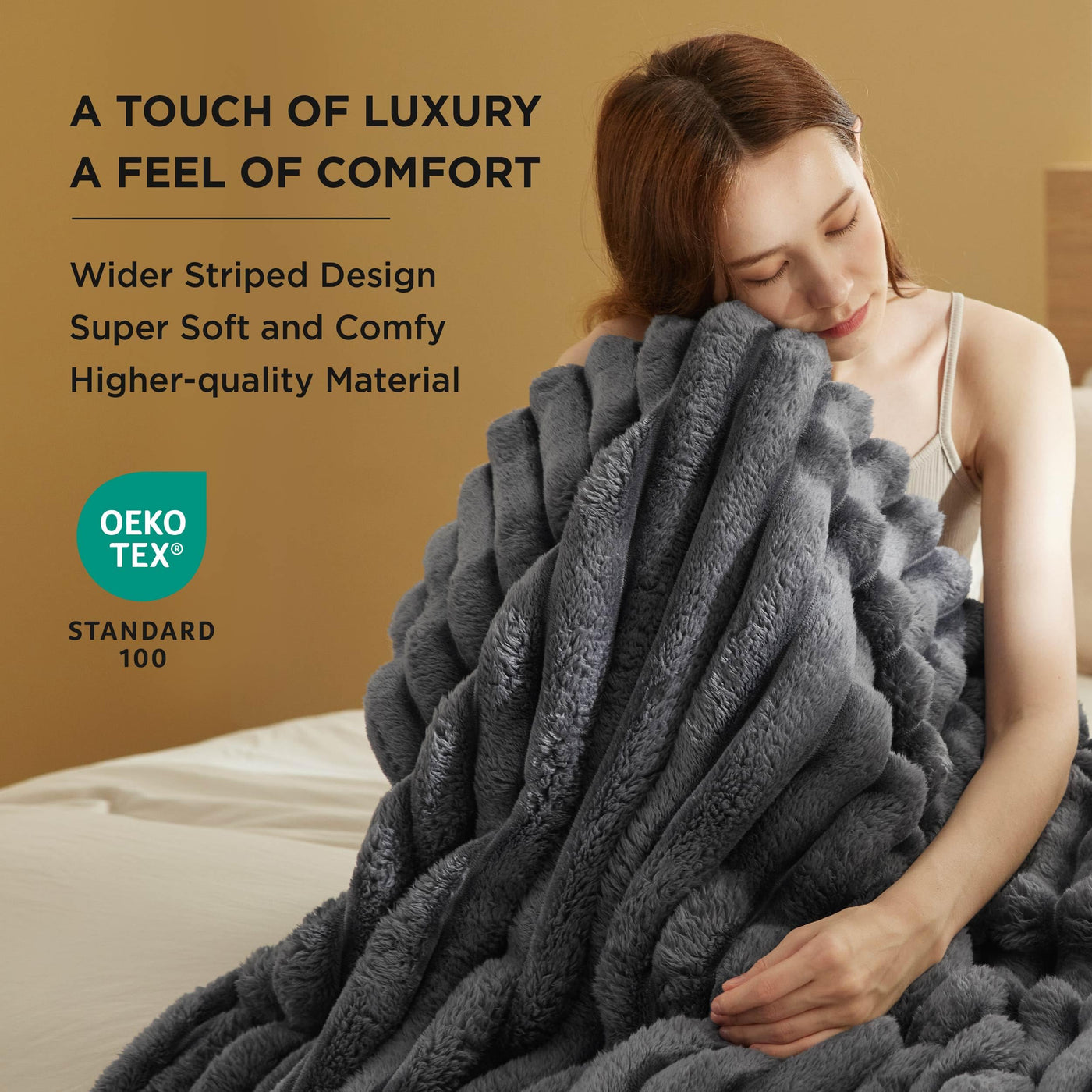 Q: What distinguishes the design of this blanket from standard options?A: The Bedsure Twin Blanket features an upgraded wider stripe design with 2.2-inch wide stripes, offering a more visually impactful and luxurious appearance compared to standard blankets. This design adds elegance and comfort to your living space.