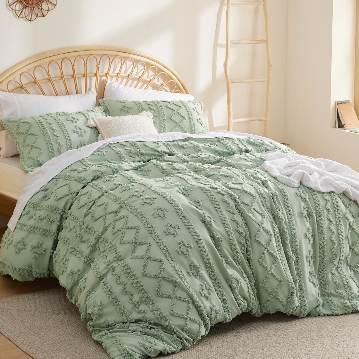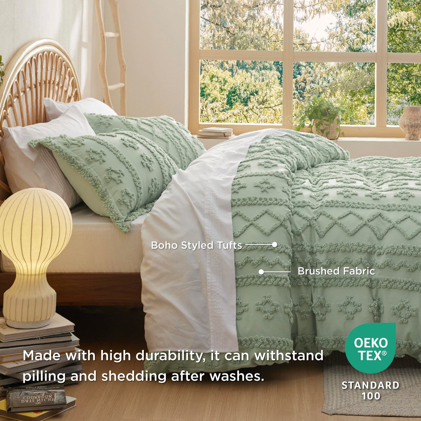 Boho Bedding: This duvet cover set, inspired by a chic boho design with embroidered tufts in an elegant geometric pattern, adds a sophisticated style to your sleeping space, making it a great choice for Christmas gifts for her. | Comfortable: Brushed during production for a soft texture, this duvet cover set provides a soothing touch to your skin, making it perfect for women Christmas gifts. | Thoughtful Details: Eight ties inside the duvet cover ensure a secure fit to prevent your duvet insert from bunching. The zipper allows you to seal off your comforter more quickly and easily than with traditional button closures, making it one of the greatest Christmas gift ideas. | A Perfect Gift: This bedding set is perfect for gifting, offering elegant coziness for various occasions such as Mother's Day, Valentine's Day, or Christmas, making it thoughtful gifts for woman to show you care. | Enhanced Durability: With the premium microfiber fabric and Bedsure's unique dyeing technique, this tufted duvet cover set resists fading, shrinking, and seam slippage after washing. Machine wash separately in cold water on a gentle cycle and tumble dry low or line dry. | What You Get: This Bedsure twin duvet cover set comes with 1 duvet cover (68' x 90') and 1 pillow sham (20' x 26').