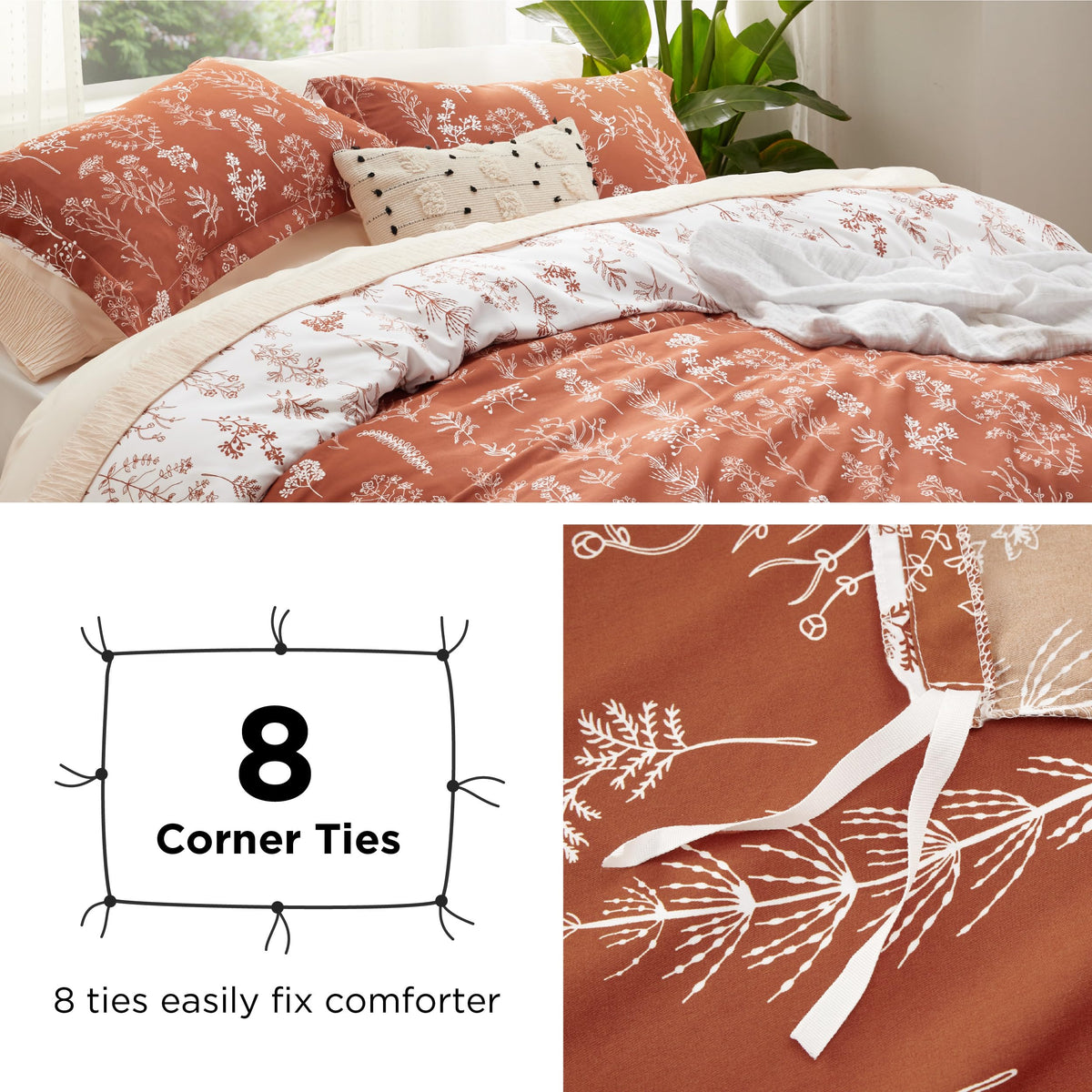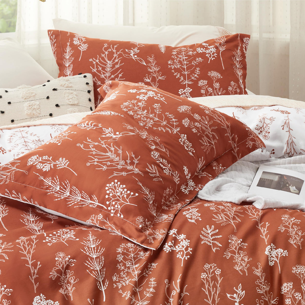 Bedsure Twin/Twin Xl Duvet Cover - Reversible Terracotta Duvet Cover Set With Zipper Closure,Cute Floral Botanical Pattern Bedding Comforter Cover, 1 Duvet Cover 68'X90' And 1 Pillow Sham 20'X26'