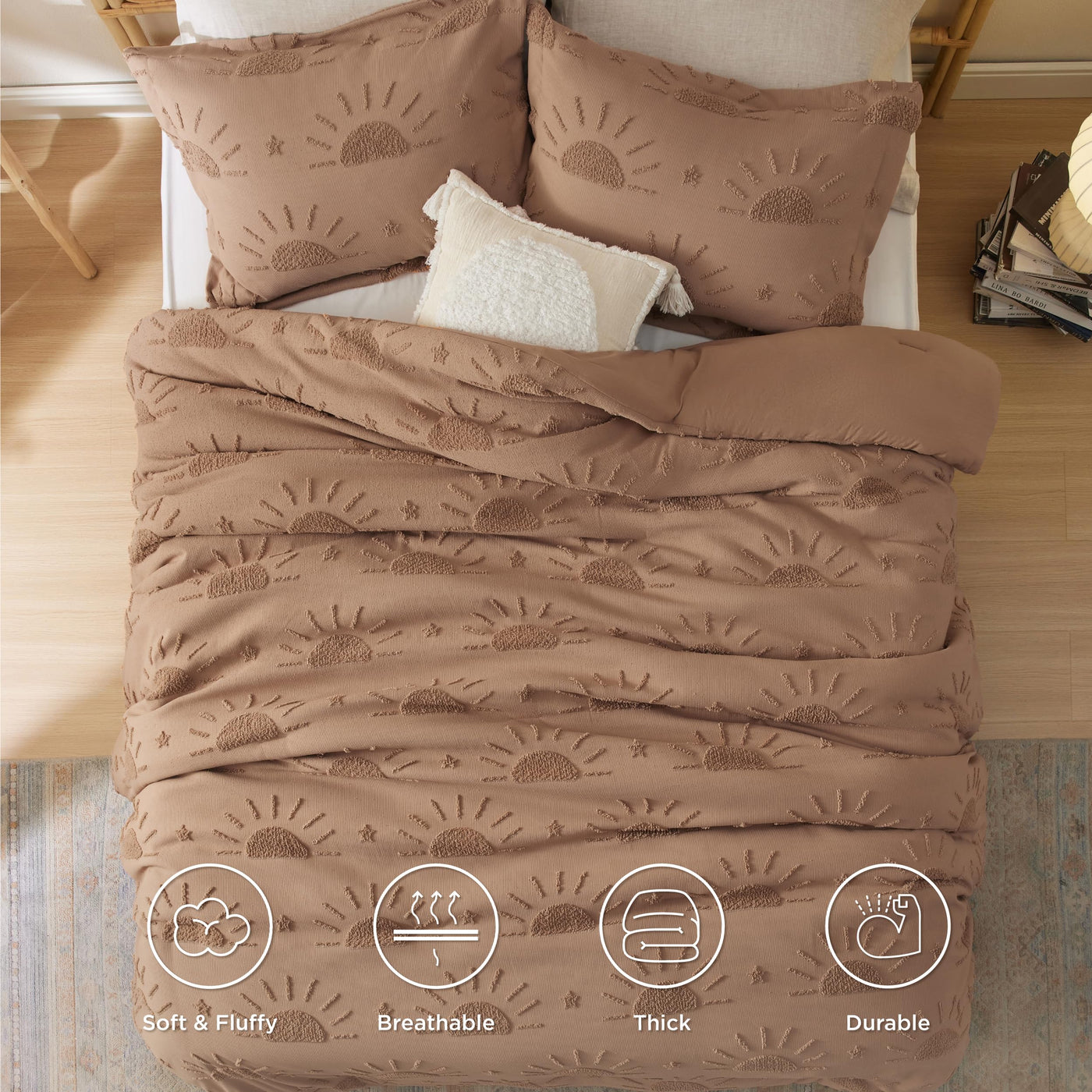 Bedsure Twin/Twin Xl Size Comforter Set Taupe, Boho Tufted Bedding Comforter Set, Farmhouse Jacquard Solar Pattern Bed Set, 2 Pieces, 1 Shabby Chic Fluffy Comforter & 1 Pillow Sham