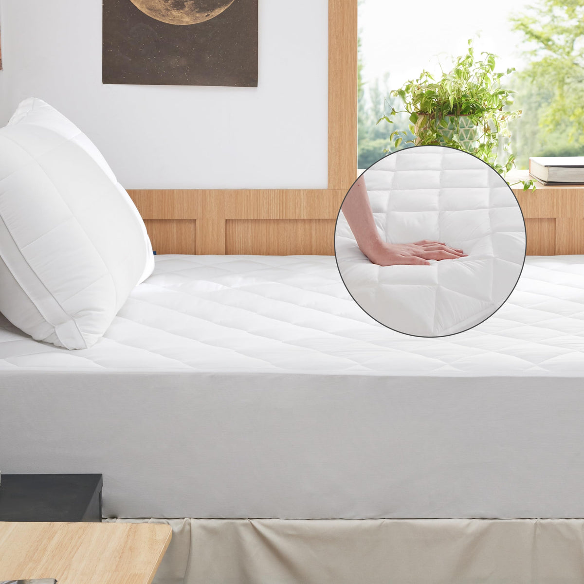 Introducing our premium Waterproof Mattress Pad with a Deep Pocket, designed to provide the ultimate comfort and protection for your mattress. Made with high-quality materials, this mattress pad offers a luxurious softness that will enhance your sleep experience. Our mattress topper features a waterproof barrier that effectively protects your mattress from spills, stains, and accidents. Say goodbye to worries about liquid damage or unsightly stains on your mattress. The waterproof layer is noiseless, ensuring a peaceful and undisturbed sleep throughout the night. With its deep pocket design, this mattress pad easily fits mattresses of various sizes up to 22inch thickness, including extra-deep mattresses. The elasticized skirt ensures a secure and snug fit, preventing the topper from shifting or sliding off during the night. You can rest assured that your mattress pad will stay in place, providing you with uninterrupted comfort. Not only does our mattress pad offer exceptional protection, but it also adds an extra layer of cushioning to your mattress. The plush and comfortable surface provides a soft and cozy feel, enhancing the overall comfort of your bed. You'll wake up feeling refreshed and rejuvenated, ready to take on the day. In addition to its practical benefits, our mattress pad cover is also easy to clean and maintain. Simply machine wash and tumble dry on low heat for a hassle-free cleaning process. The durable construction ensures that this mattress pad will withstand regular use and maintain its quality over time. Invest in the ultimate sleep experience with our Waterproof Mattress Pad with Deep Pocket. Enjoy the luxurious softness, noiseless protection, and comfortable cushioning it provides. Upgrade your mattress and transform your sleep into a truly restful and rejuvenating experience.