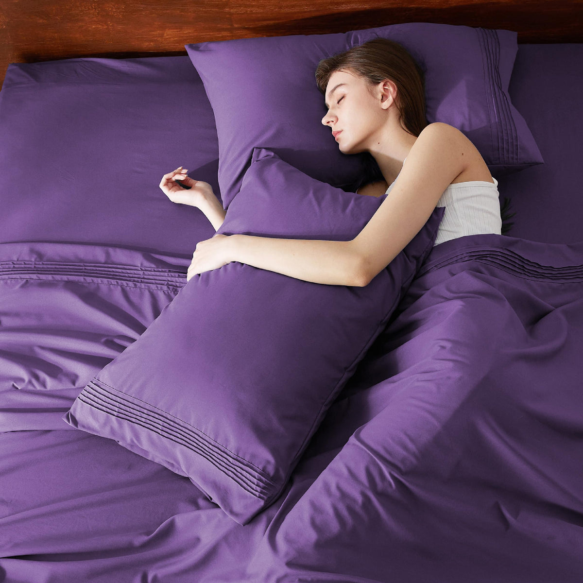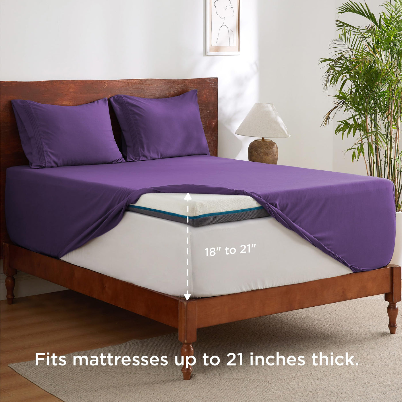 Bedsure Twin Xl Sheets Dorm Bedding, Soft Breathable Extra Long Twin Sheets, Moisture Wicking Bedding Sheets & Pillowcases, Extra Deep Pocket Mattress Sheets Fits Up To 21' Thick, Purple