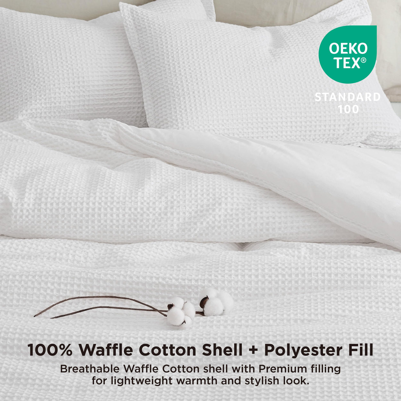 Bedsure Waffle Comforter Set California King, White Cotton Bedding Set For All Seasons, Waffle Weave Bed Set, 3 Pieces, 1 Comforter (104'X96') And 2 Pillow Shams, Cotton Cover With Polyester Fill