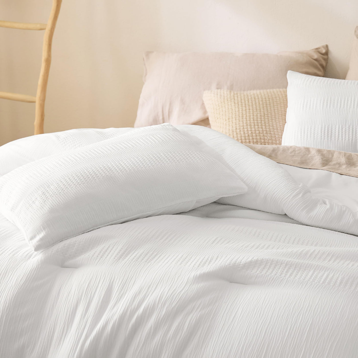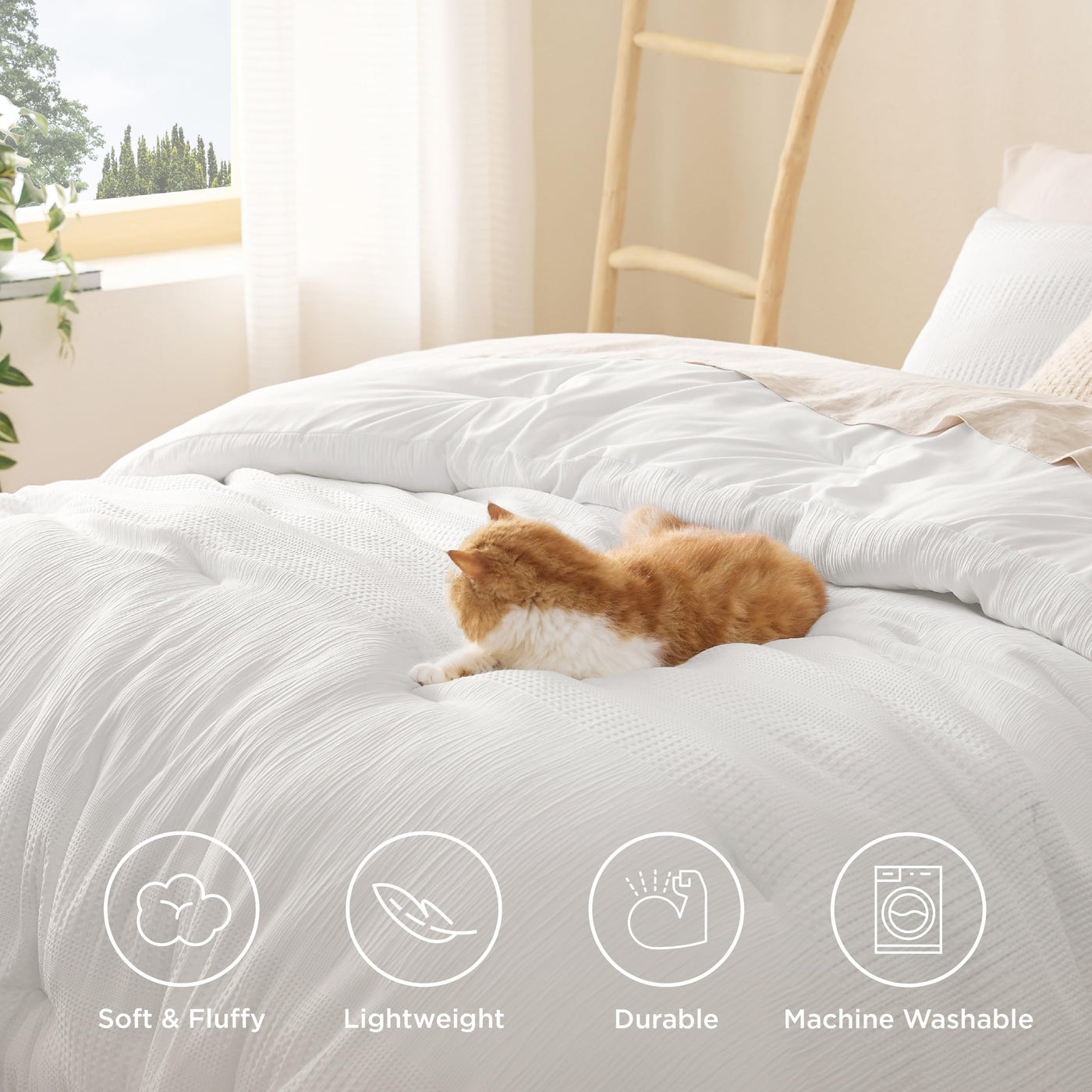 Bedsure Waffle Comforter Set King, White Boho Bedding For All Seasons, Faux Gauze Muslin Fabric Bed Set, 3 Pieces, 1 Comforter (104'X90') And 2 Pillow Shams (20'X36'+2')