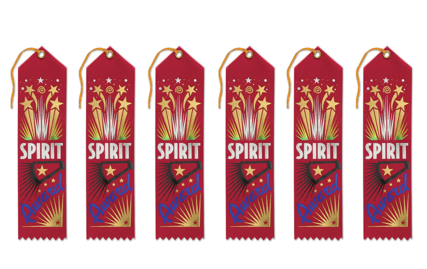 Beistle Ar020 Spirit Award Ribbon. Includes 6 Award Ribbons Per Package. These Red Award Ribbons Have A Colorful Print That Reads 'Spirit Award'. They Measure 2 Inch Wide By 8 Inch Tall.