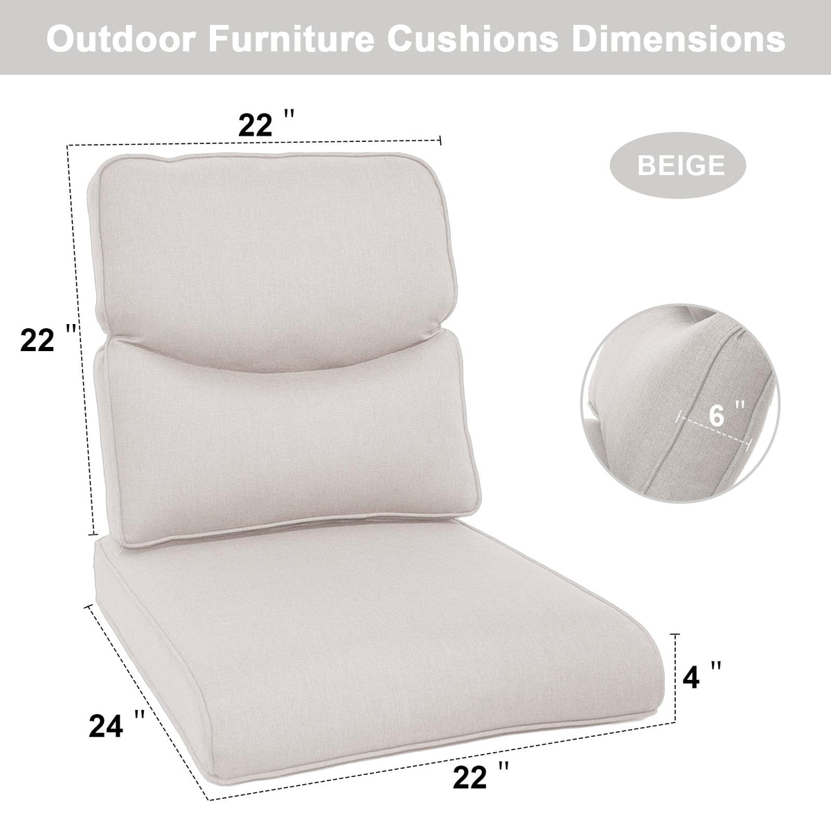 Belord Outdoor Cushions For Patio Furniture 22 X 24 Inch Patio Chair Cushions With Removable Cover, 1 Pair Of Cushions Including