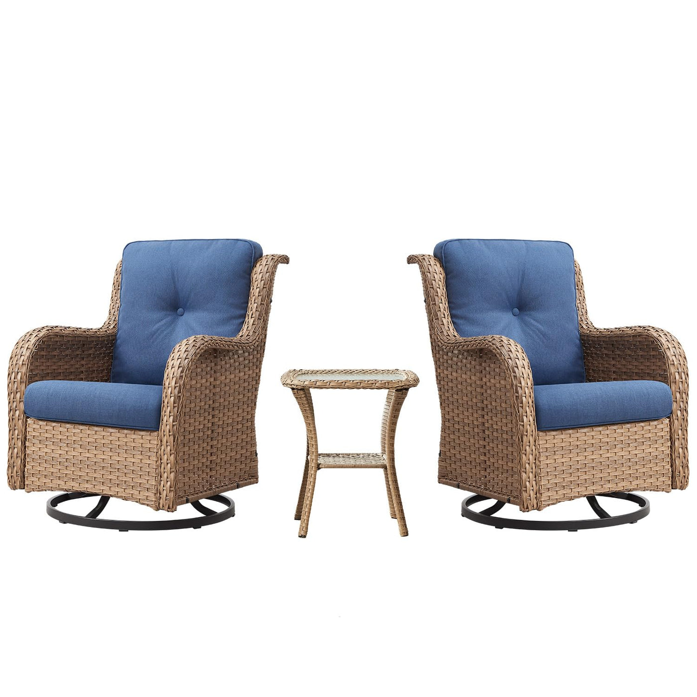 Belord Outdoor Swivel Rocker Patio Chairs - 360 Degree Swivel Glider Seating 350Lbs Weight Capacity 3 Piece Wicker Rocking Chairs Set With Side Table For Porch Balcony Deck, Yellow/Blue