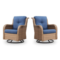 Belord Outdoor Swivel Rocker Patio Chairs - 360 Degree Swivel Glider Seating 350Lbs Weight Capacity Wicker Rocking Chairs Set Of 2 With Removable Cushion For Porch Balcony Deck, Yellow/Blue
