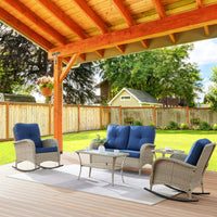 Belord Wicker Conversation Sets Patio Furniture 5 Pcs Outdoor Rocking Chairs With Rattan Loveseat, Wicker Table And Chairs Set For Patio Deck Poolside Blue Cushion