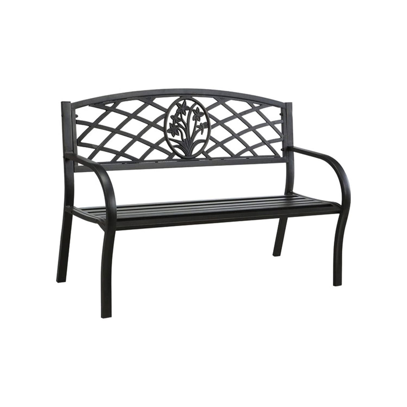 It Is Made Of Durable Steel, This Reliable Outdoor Bench Will Make The Perfect Addition To Any Sized Backyard. This Bench Will Be A Perfect Fit For Providing Patio Seating. Style Up Your Decor In A Casual Way While Adding A Comfortable Extra Sitting Option That Adorns The Beauty Of Your Spaces, While Giving It An Enchanting Look. It Features A Unique Designed Backrest With Side Armrests. It Is Finished In Black Color.