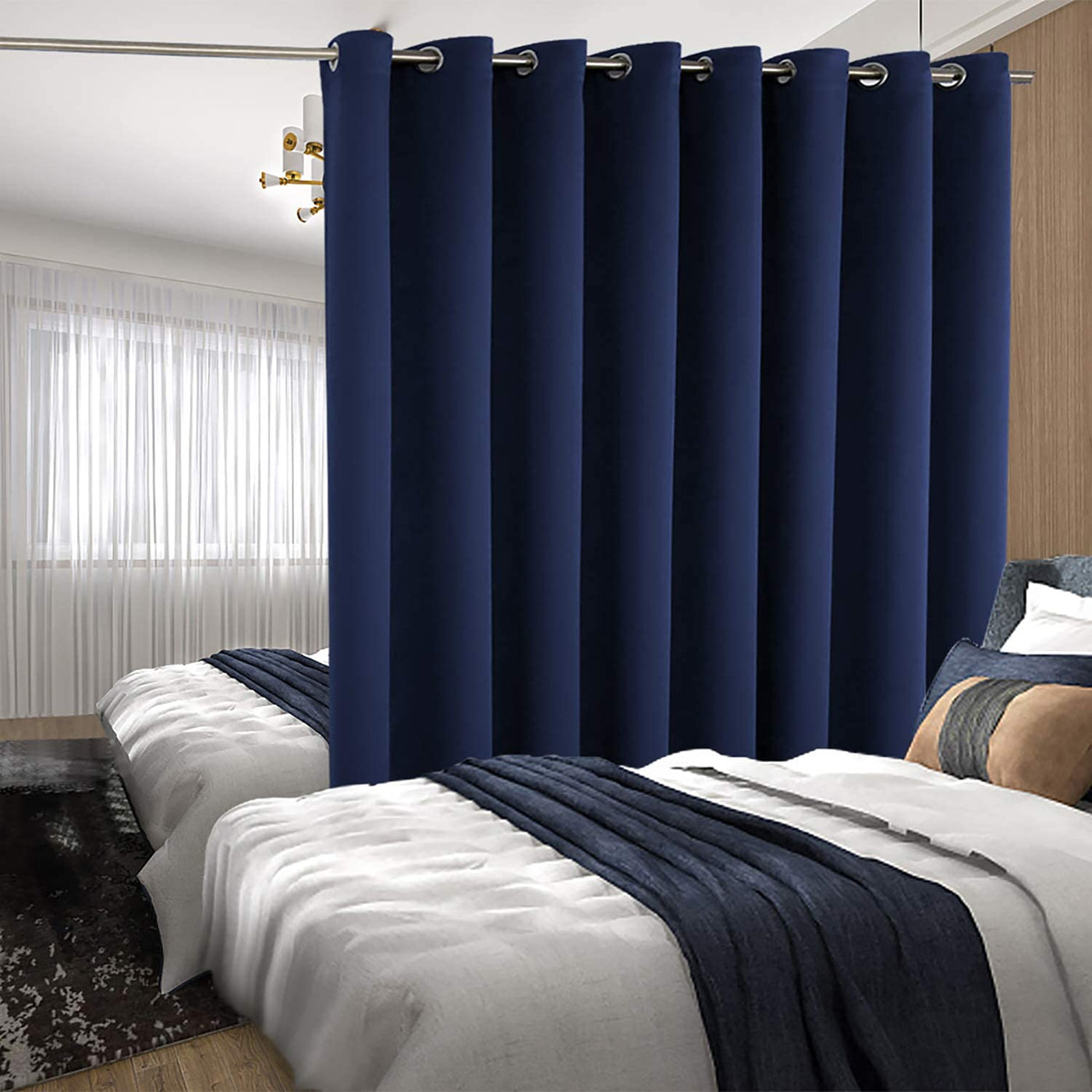 Bgment Extra Wide Room Divider Curtain 96 Inch Length For Living Room, Room Darkening Curtain For Patio Sliding Door, Privacy Noise Reducing Blackout Curtain For Bedroom, Navy, 1 Panel, 120 Wide