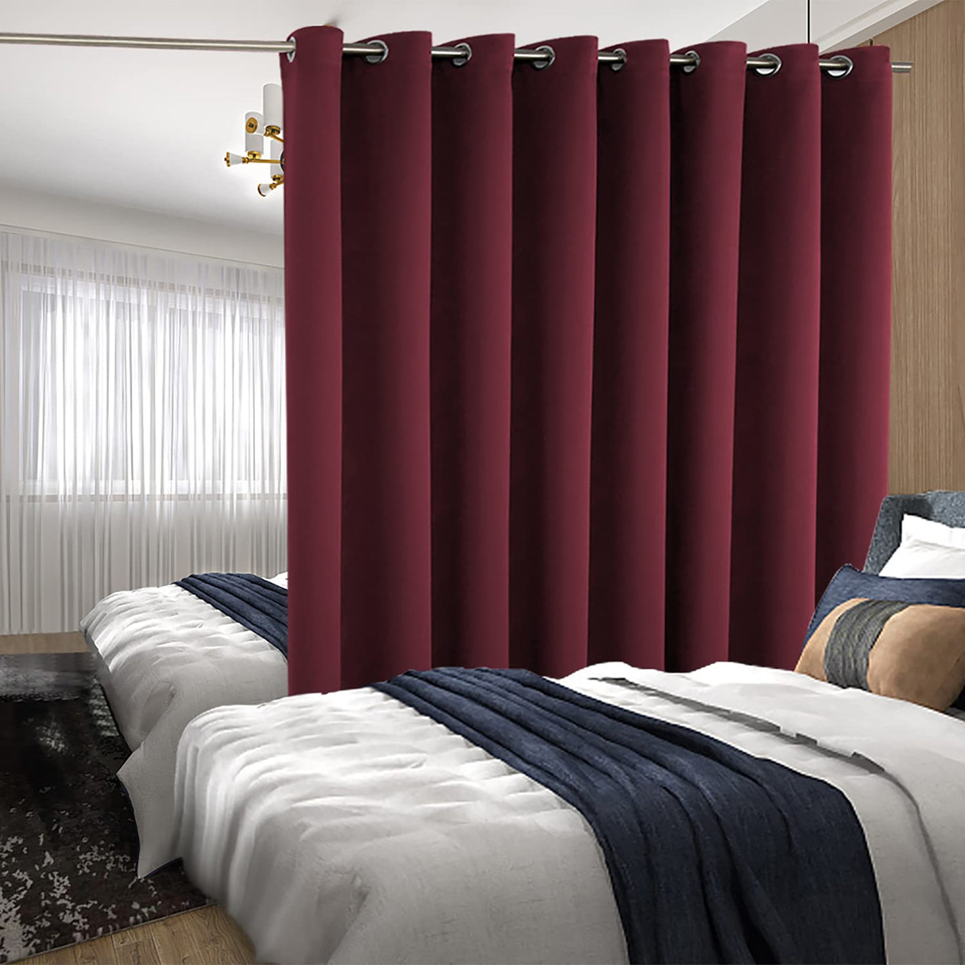 Bgment Extra Wide Room Divider Curtain 96 Inch Long For Living Room, Christmas Room Darkening Curtain For Patio Sliding Door, Privacy Soundproof Blackout Bedroom Curtain, Burgundy, 1 Panel, 120 Wide