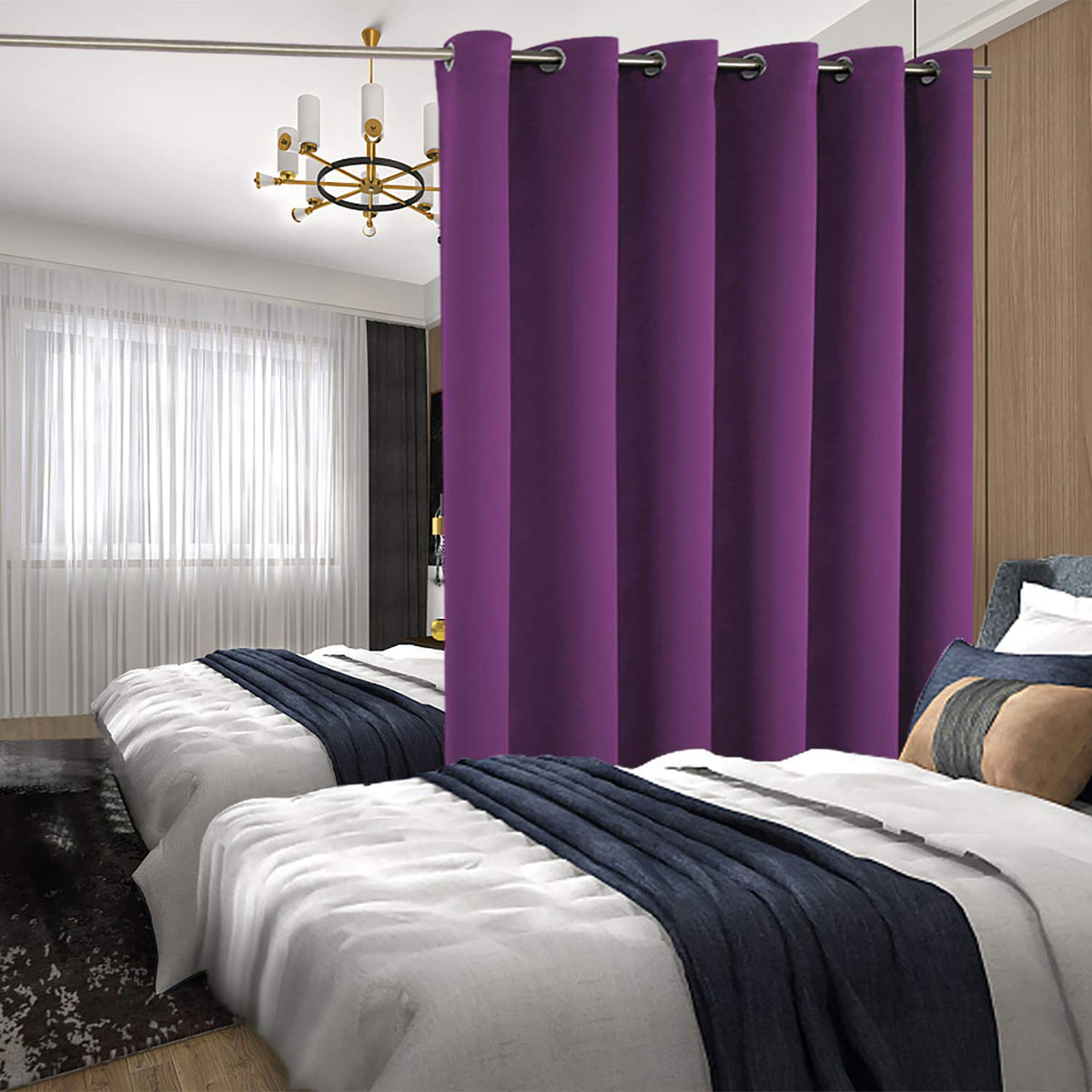 Bgment Fashion Sliding Door Curtain 120 X 96 Inches, Wide Thermal Blackout Curtains Room Darkening Room Divider Window Curtain, 1 Panel, Purple, 96 Length X Wide 120