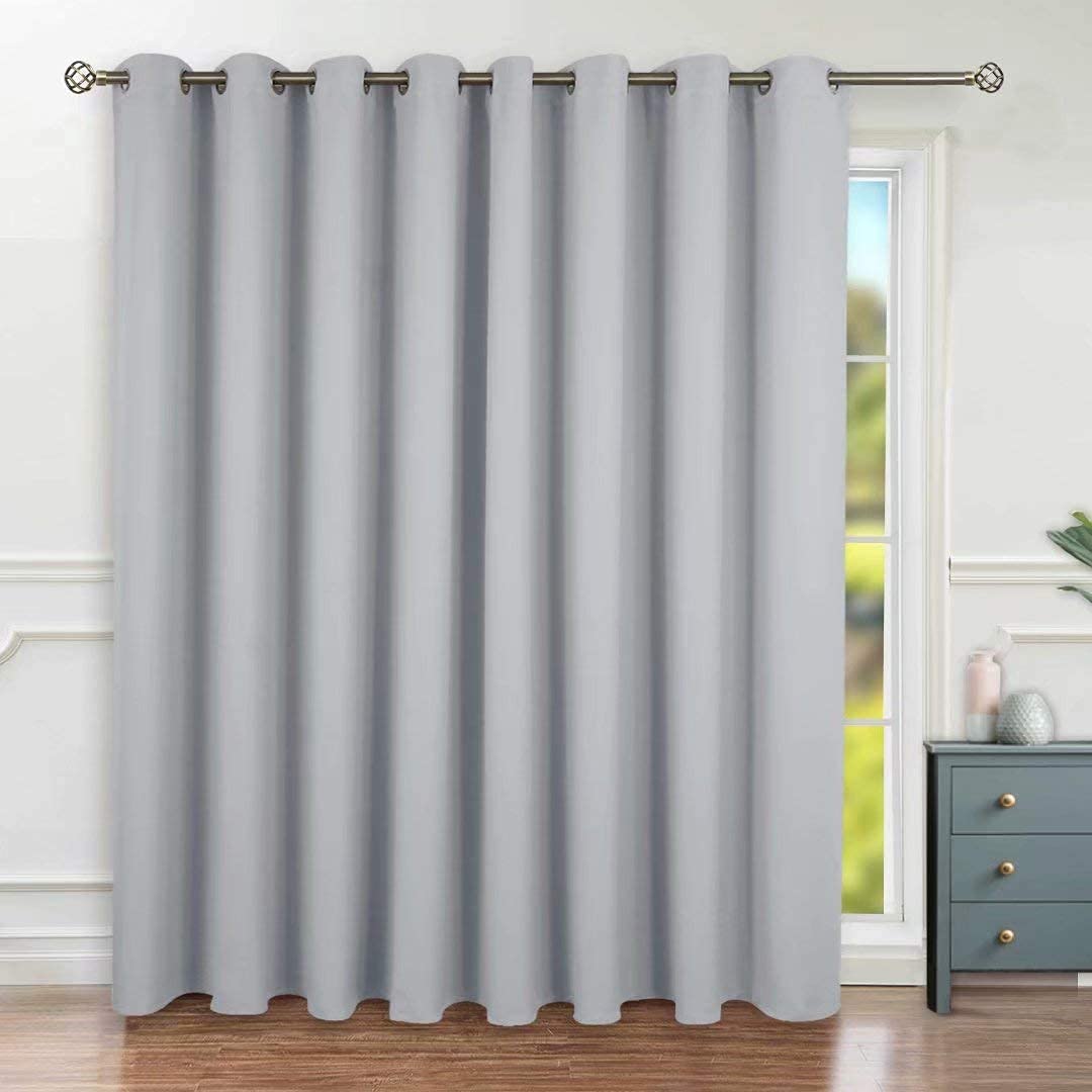 Bgment Fashion Sliding Door Curtain 180 X 96 Inches, Wide Thermal Blackout Curtains Room Darkening Room Divider Window Curtain, 1 Panel, Light Grey, 96 Length X Wide 180