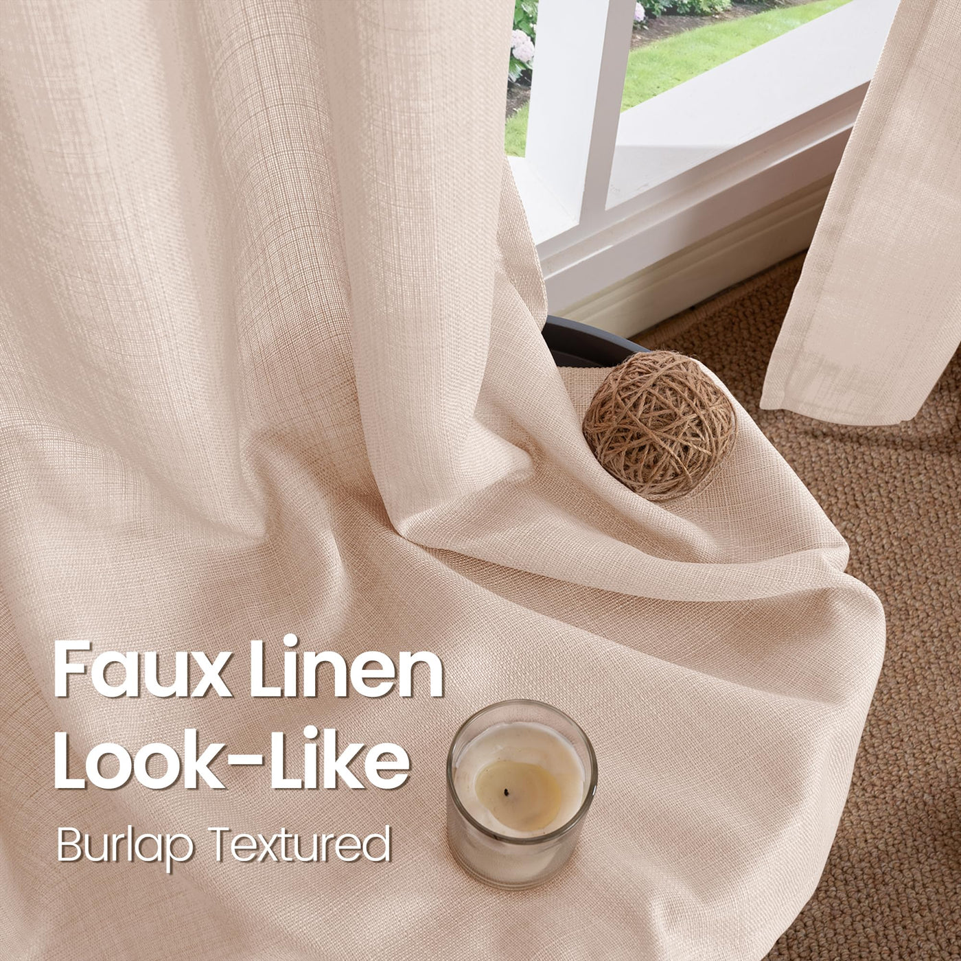 Bgment Faux Linen Curtains 95 Inches Long Set Of 2 Panels, Living Room Long Curtains Burlap Textured Thick Light Filtering Privacy Grommet Window Treatments, 52 X 95 Inch, Light Peach